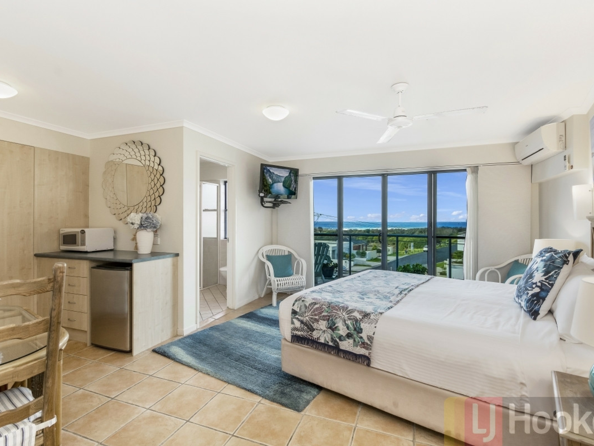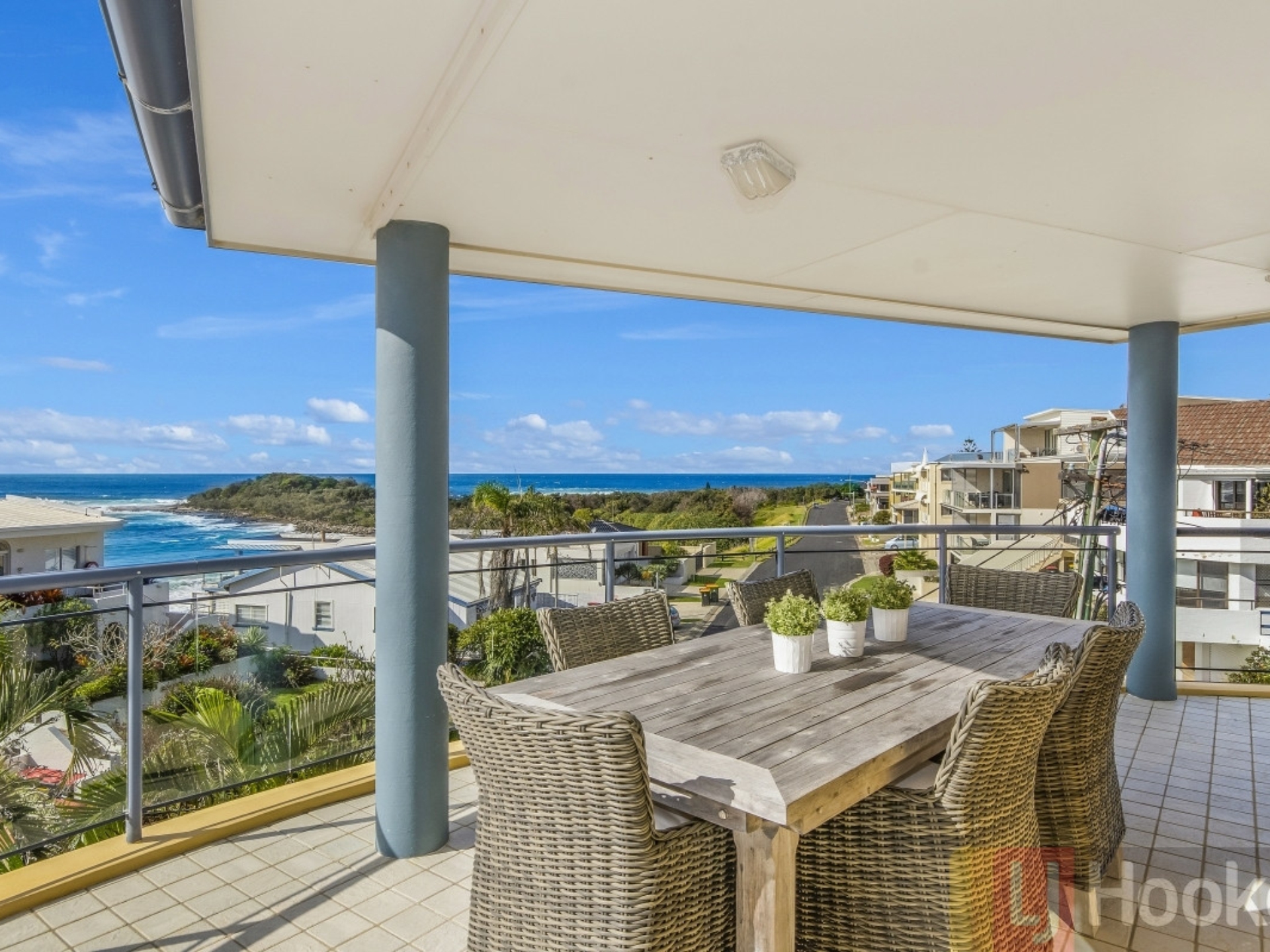 - 2 sun drenched balconies with ocean views