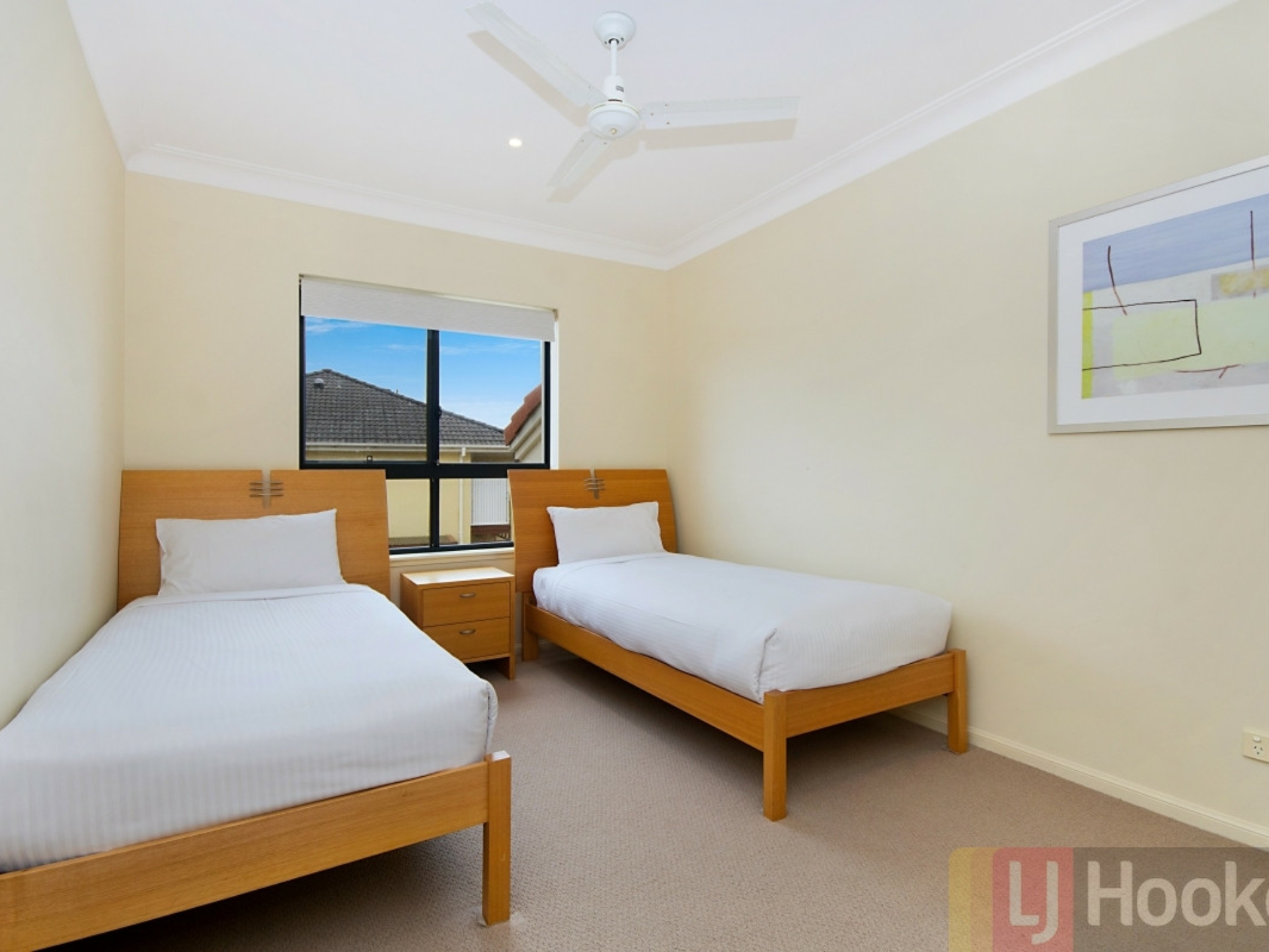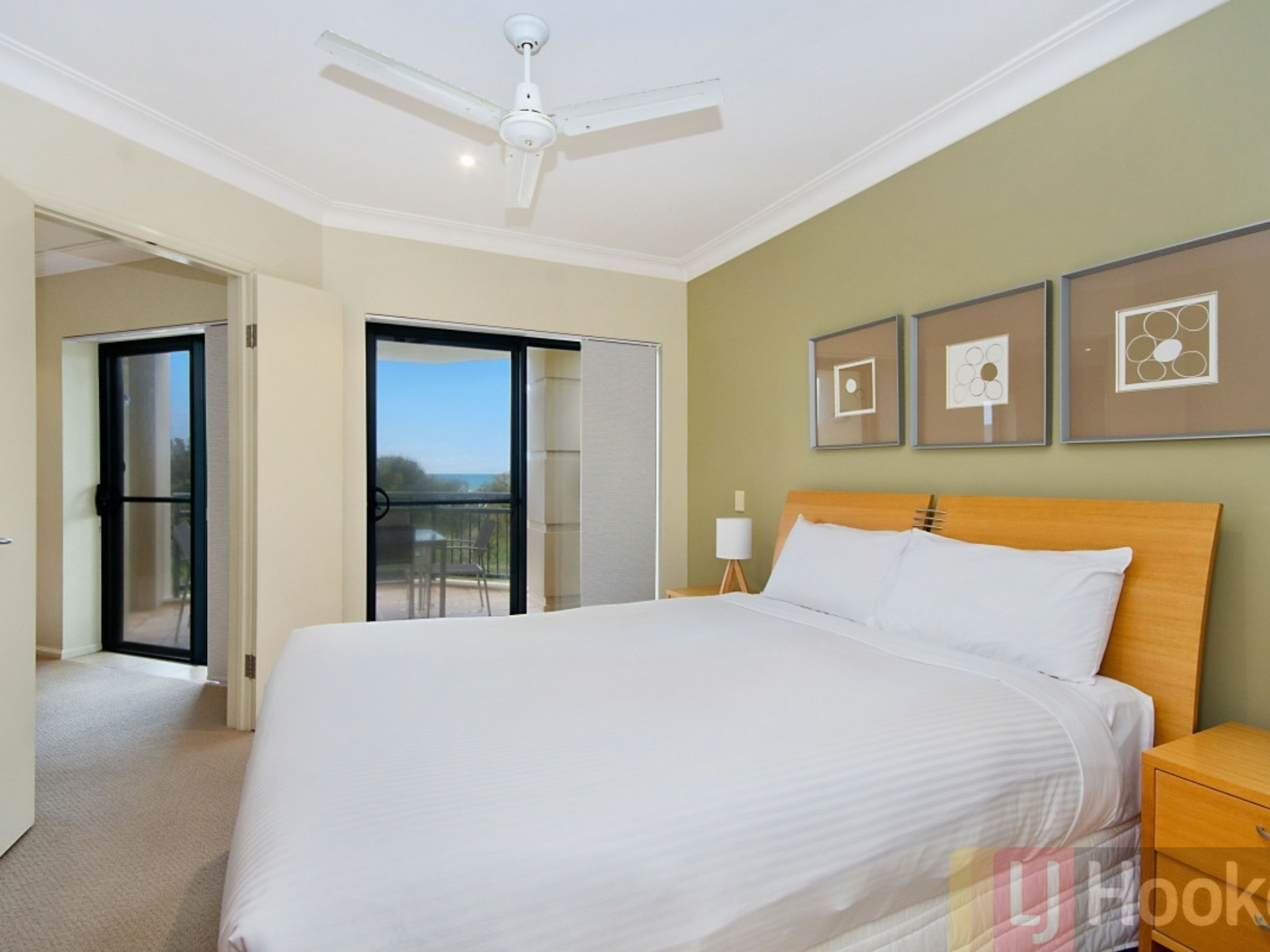 The remaining two bedrooms are also generous in size, have built-in wardrobes, with the second bedroom featuring a private balcony overlooking the resort pool and gardens.