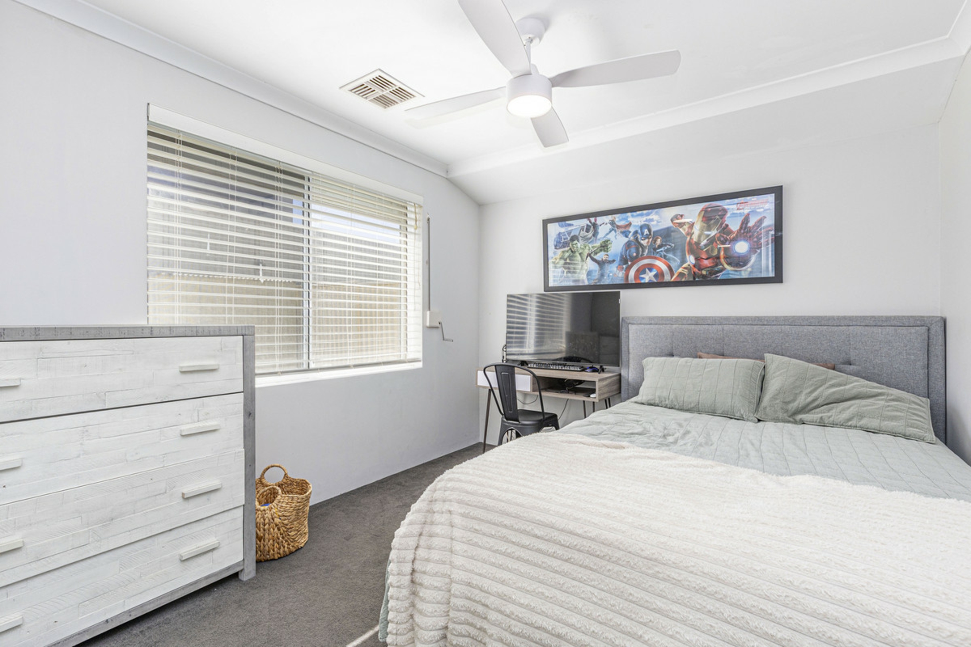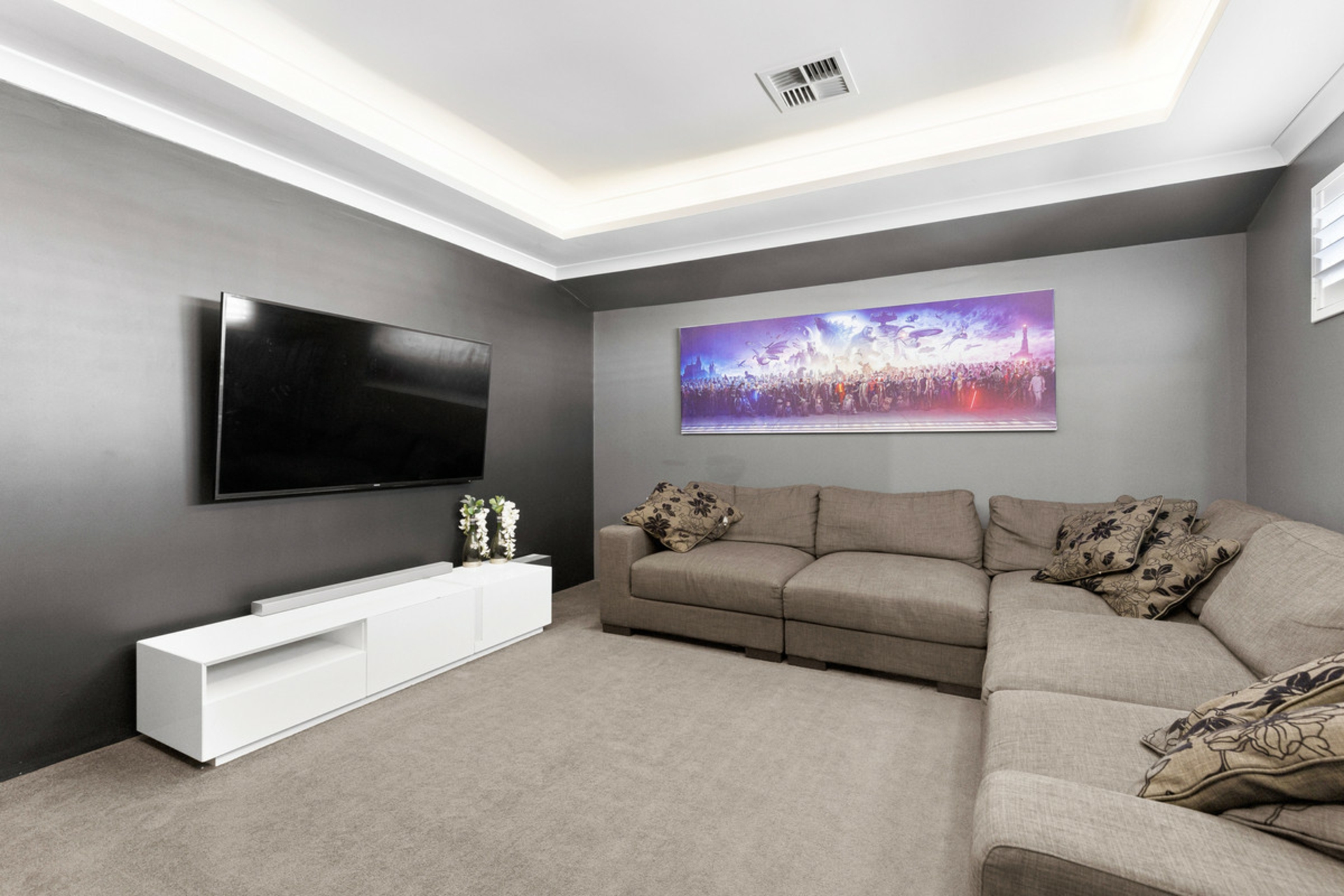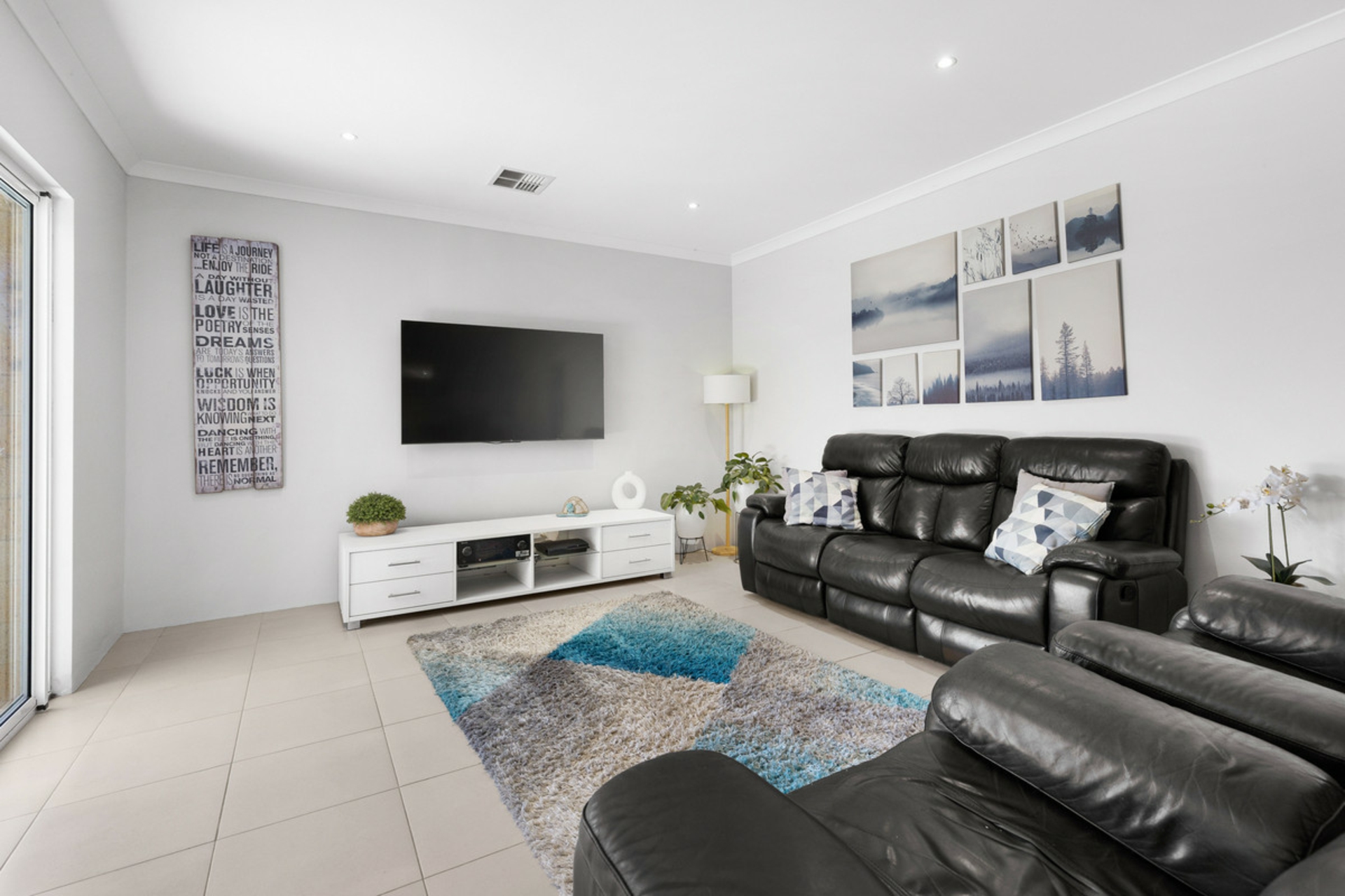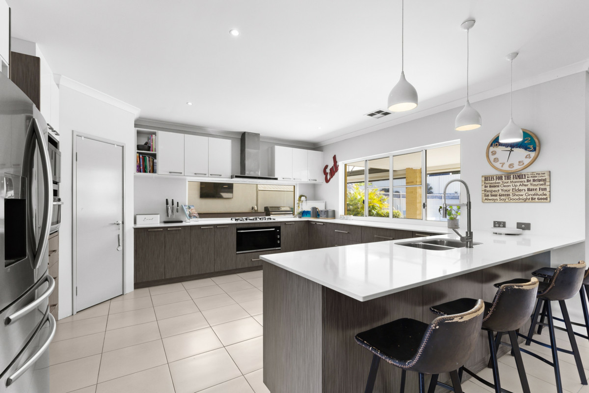 Built by Ventura in 2016 and set on a block of more than 700sqm, this five-bedroom, two-bathroom home offers space, separation and a layout that works well for family living. From the street, the home has a strong presence with its wide frontage, rendered elevation, gated front courtyard and triple garage with drive-through access to the rear.