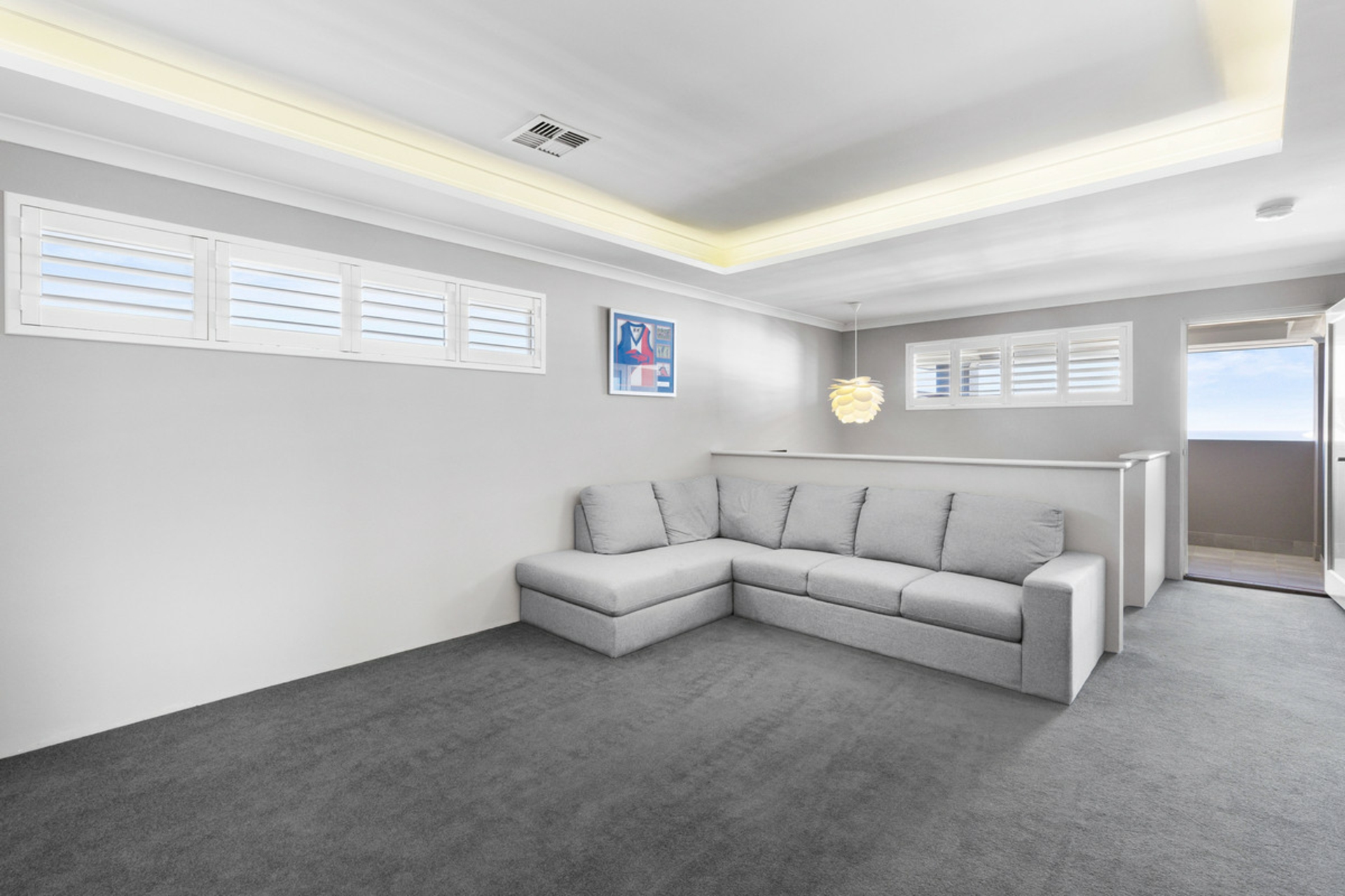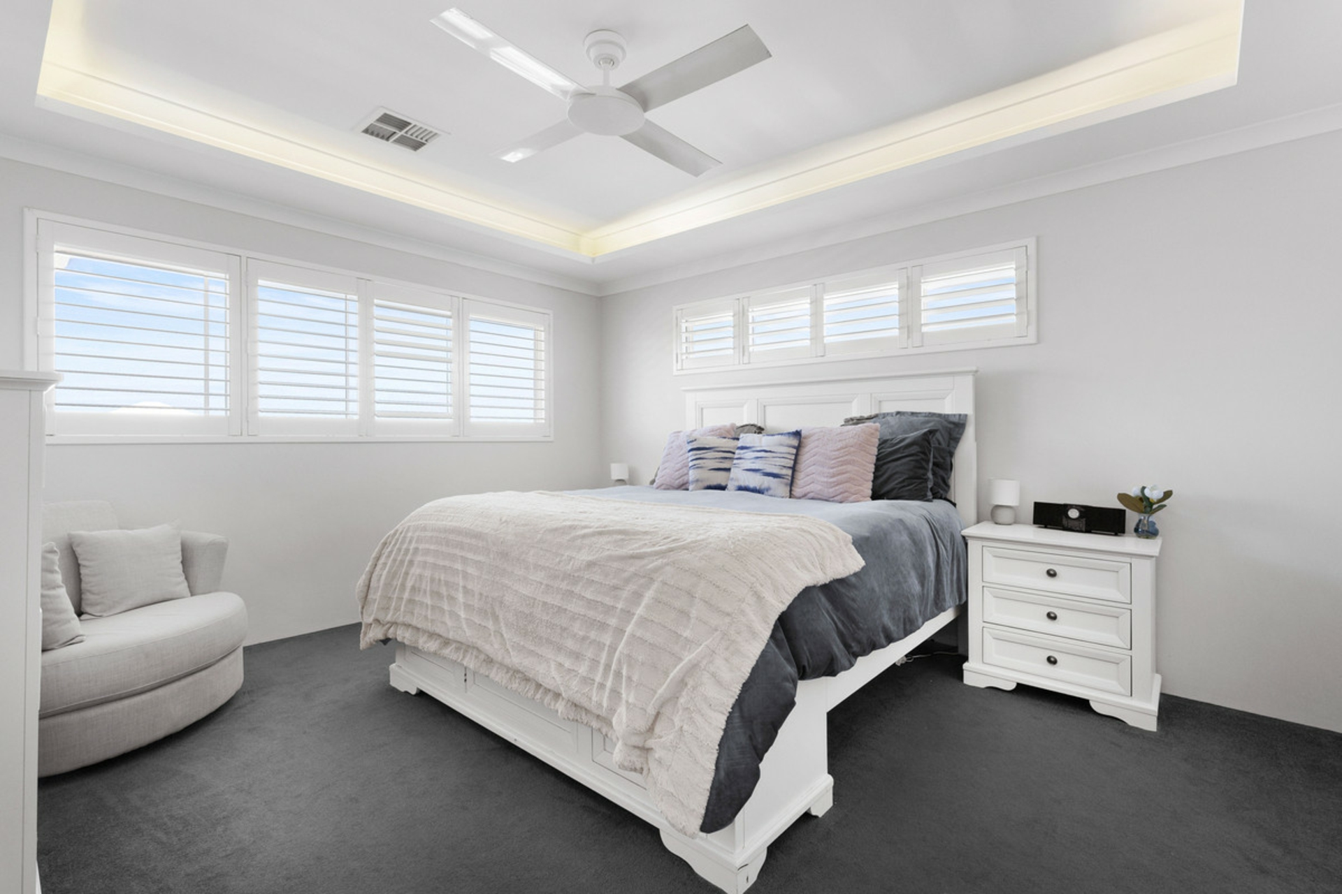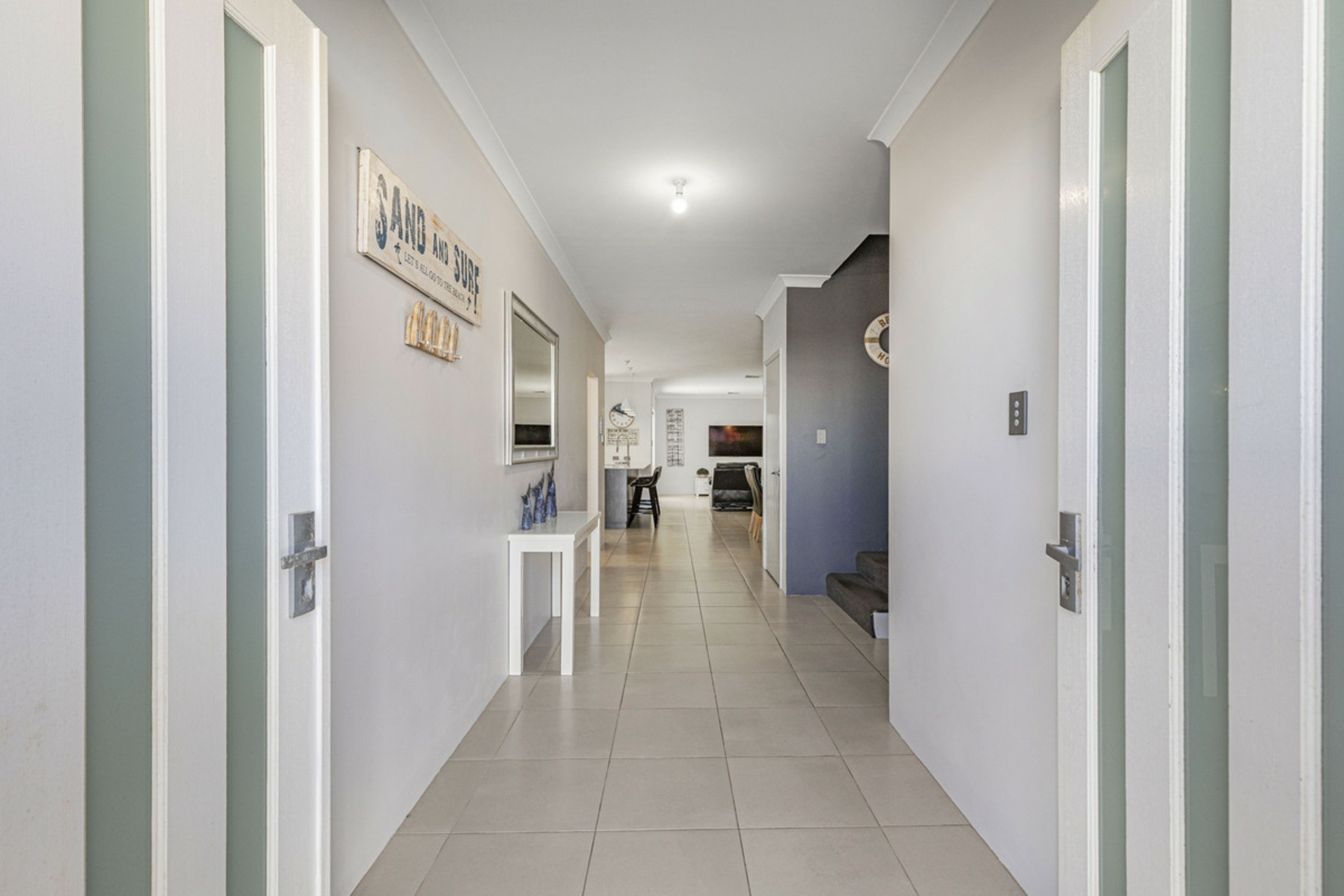 Upstairs is set up as a true parents' retreat, offering excellent separation from the rest of the home. The master suite is spacious and includes his and hers walk-in robes, plantation shutters, a modern ensuite with double vanity, and access to a balcony with ocean glimpses.