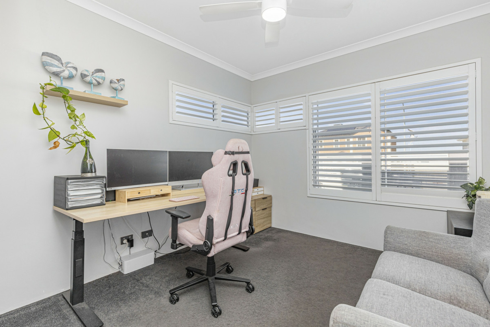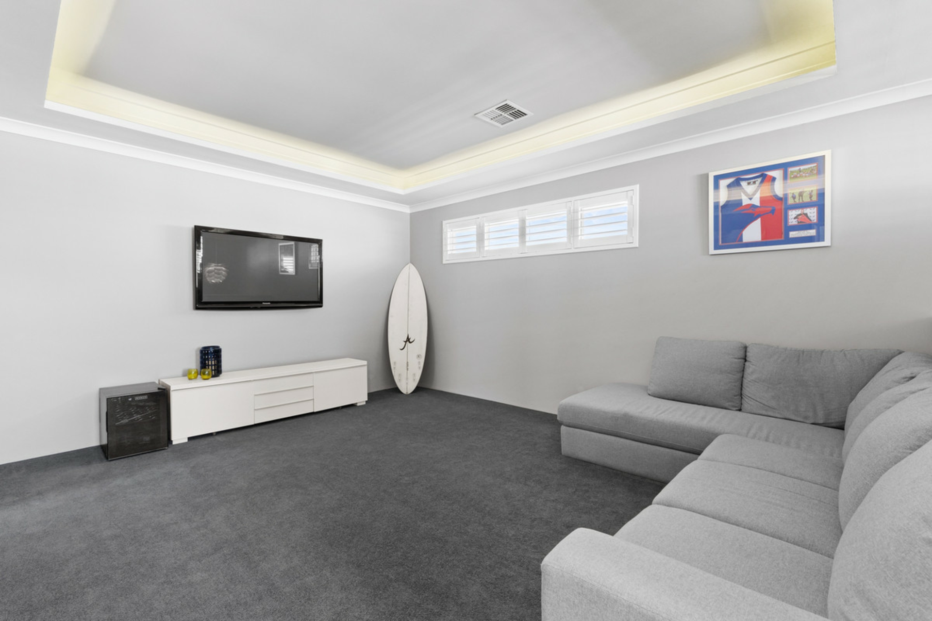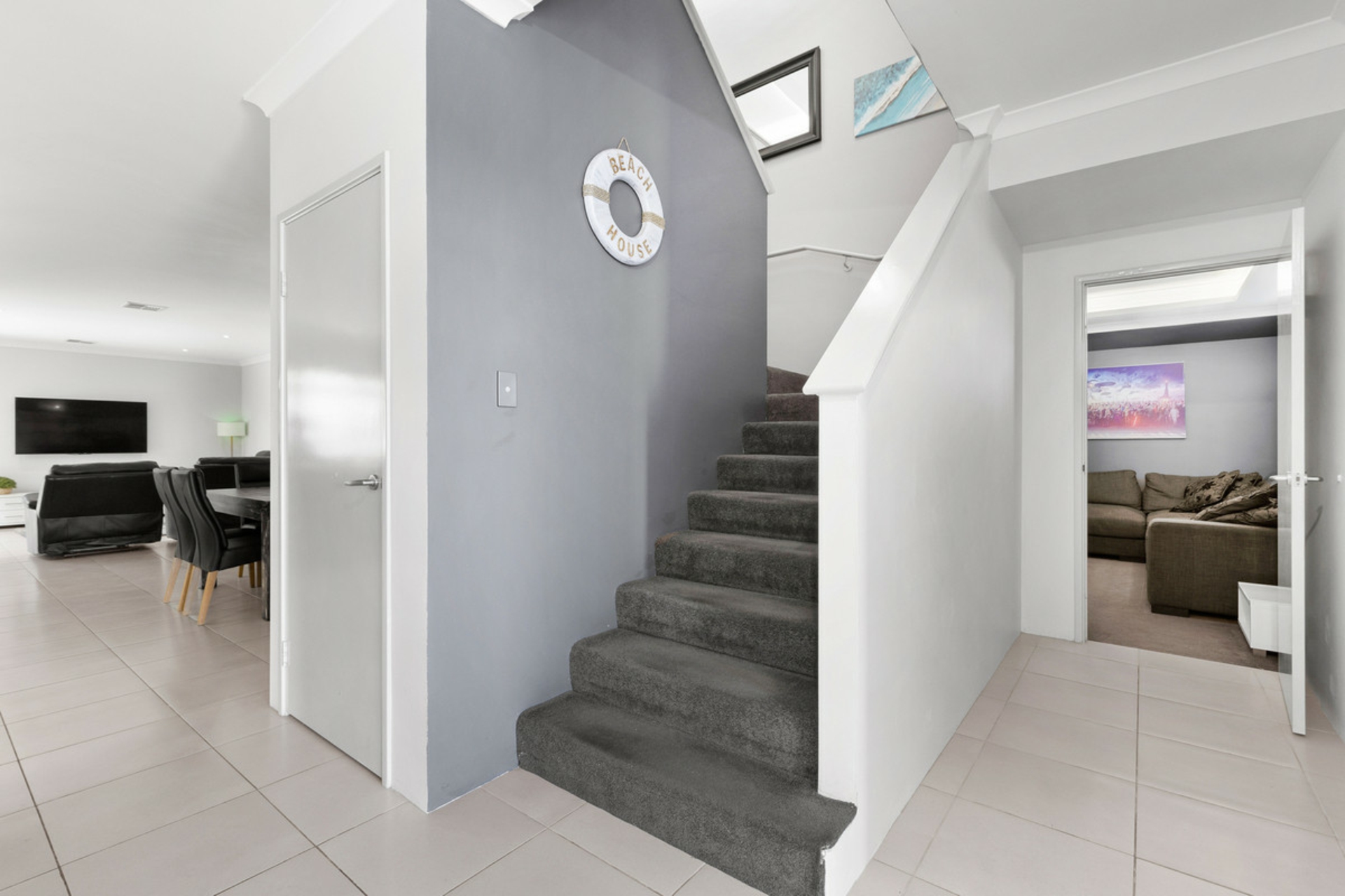 Upstairs is set up as a true parents' retreat, offering excellent separation from the rest of the home. The master suite is spacious and includes his and hers walk-in robes, plantation shutters, a modern ensuite with double vanity, and access to a balcony with ocean glimpses.