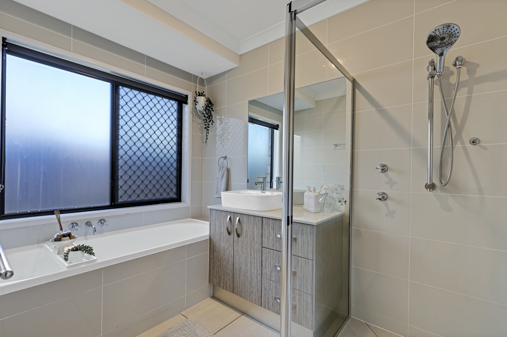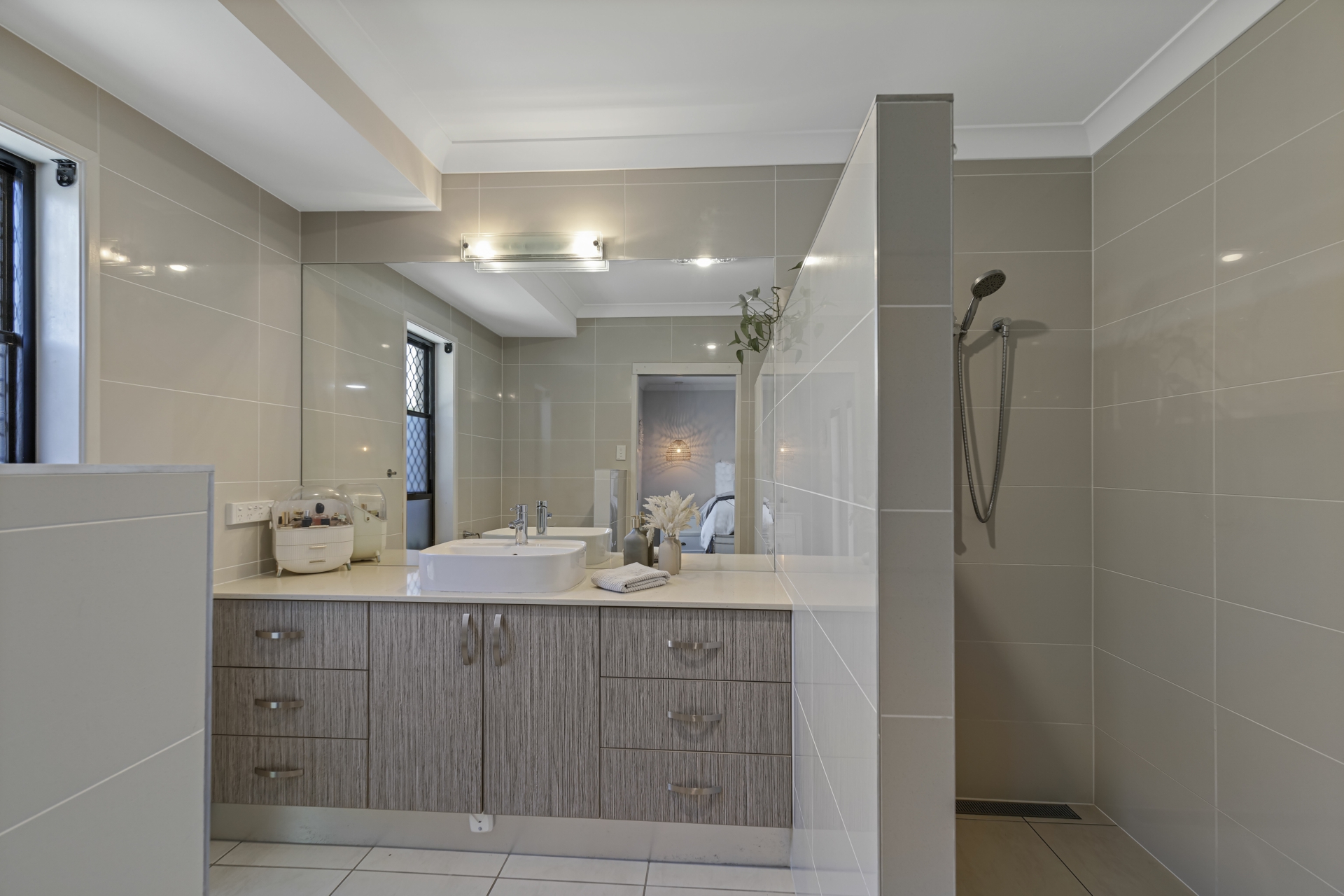 - Main bathroom with oversized shower, 1.8m bathtub and stone vanity tops.