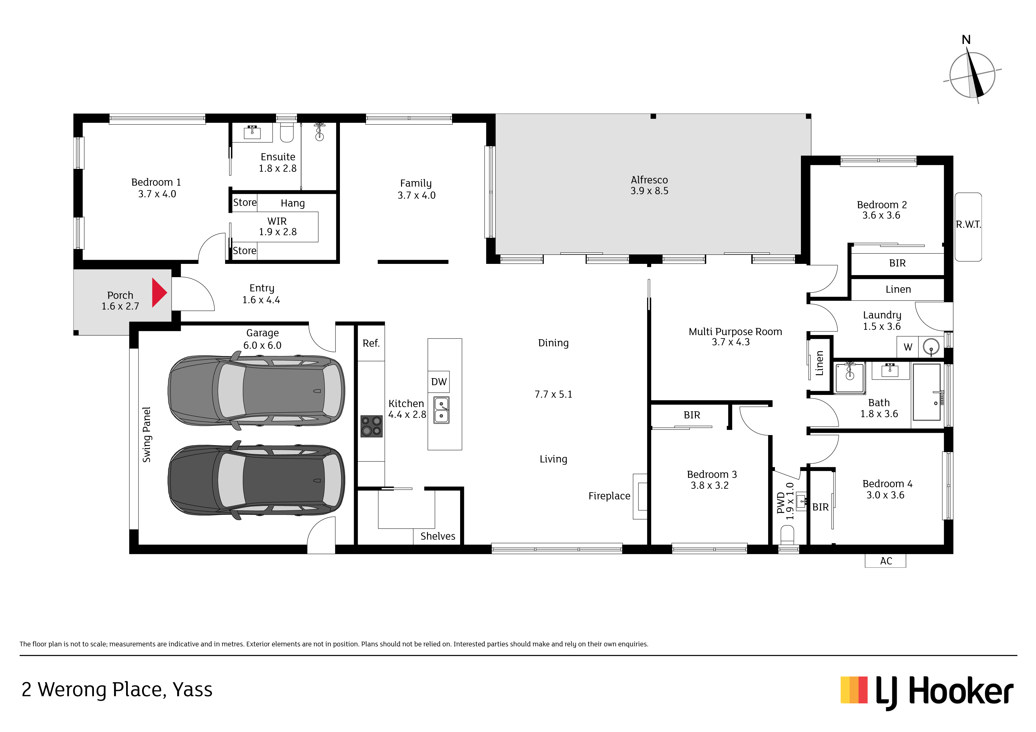 • 276m² under roof (200m² living + 39m² double garage + 33m² alfresco + 4m² porch)