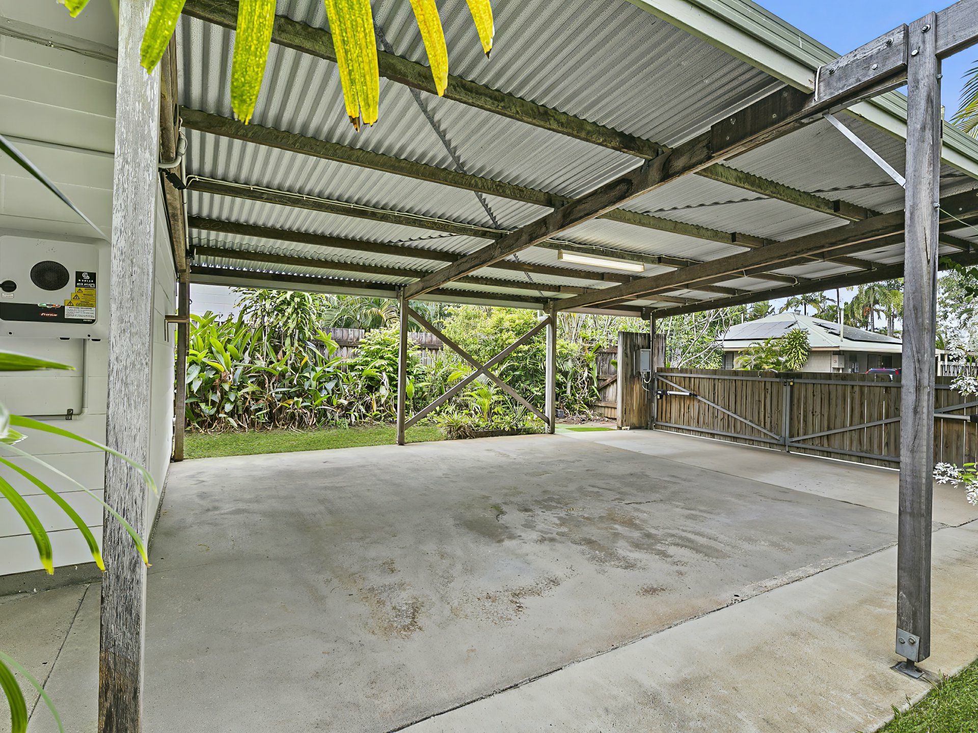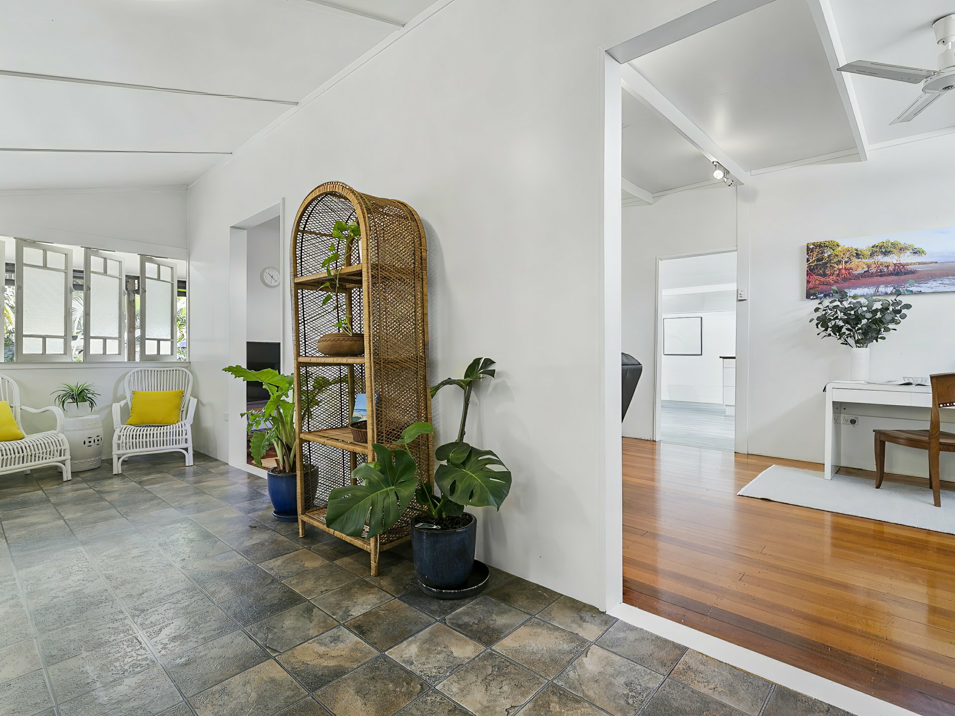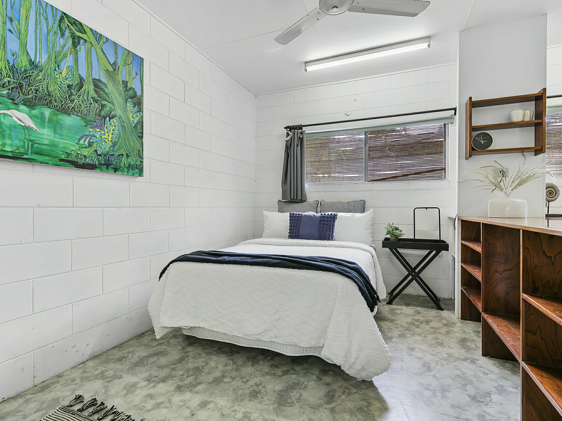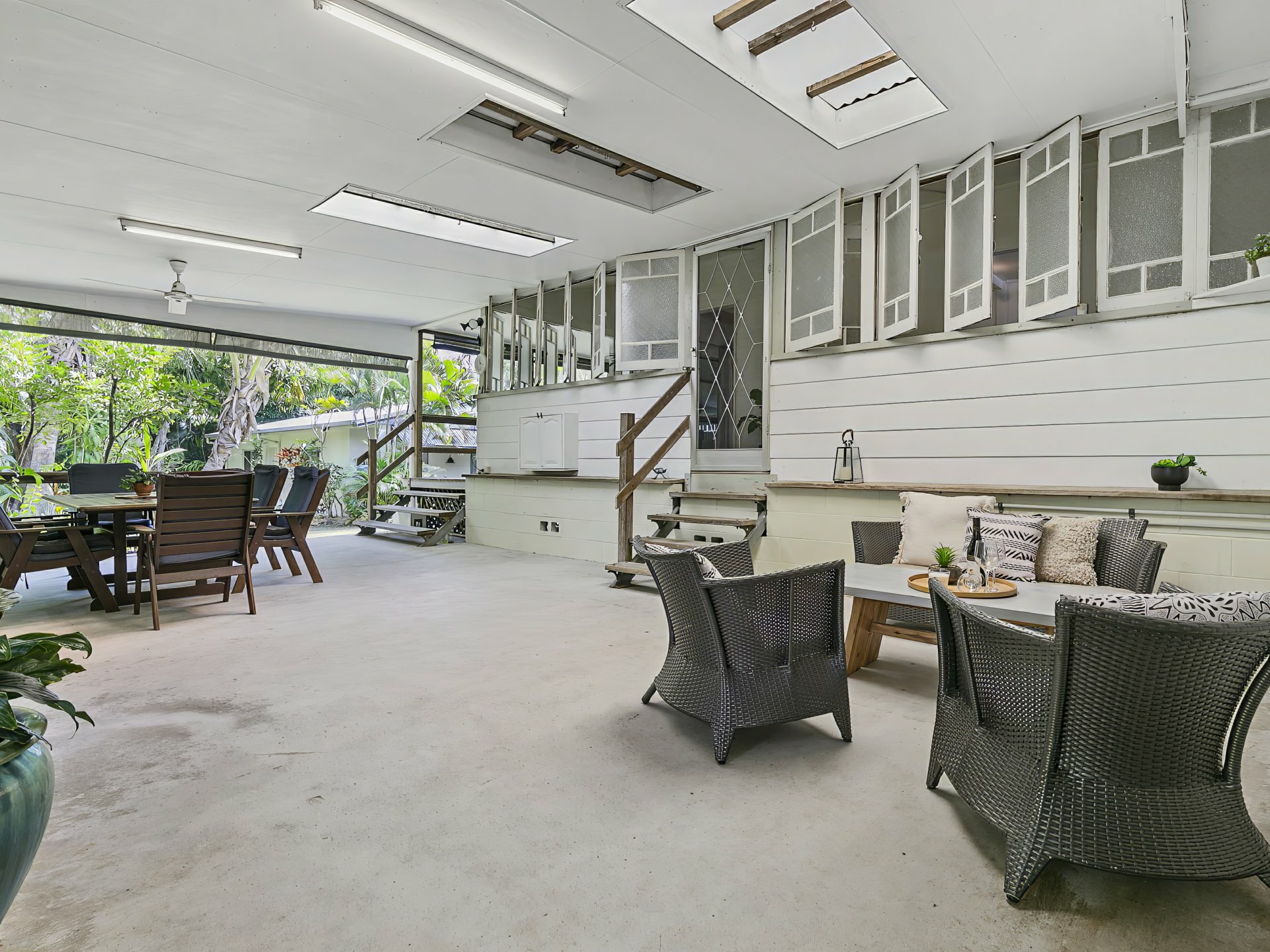 A water tank once stood near the avocado tree, used by the original owners to water the backyard market garden. While the yard does pool with water during cyclones and heavy rain, it’s never caused damage — just a temporary, tropical quirk.