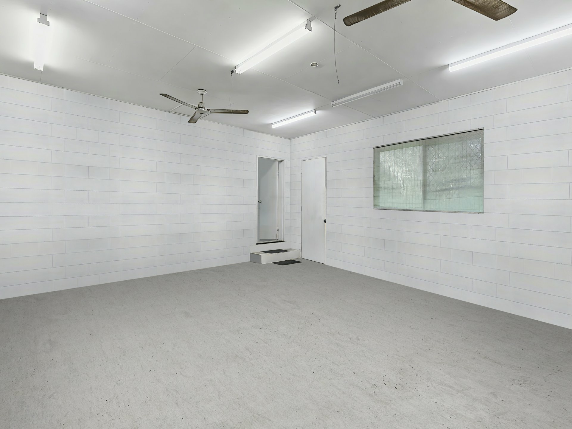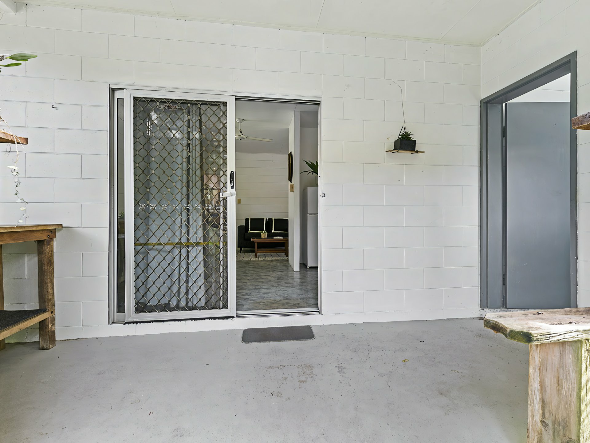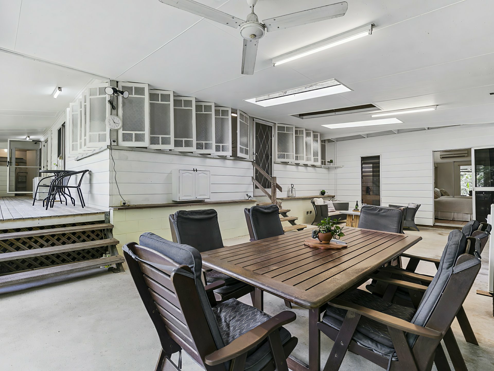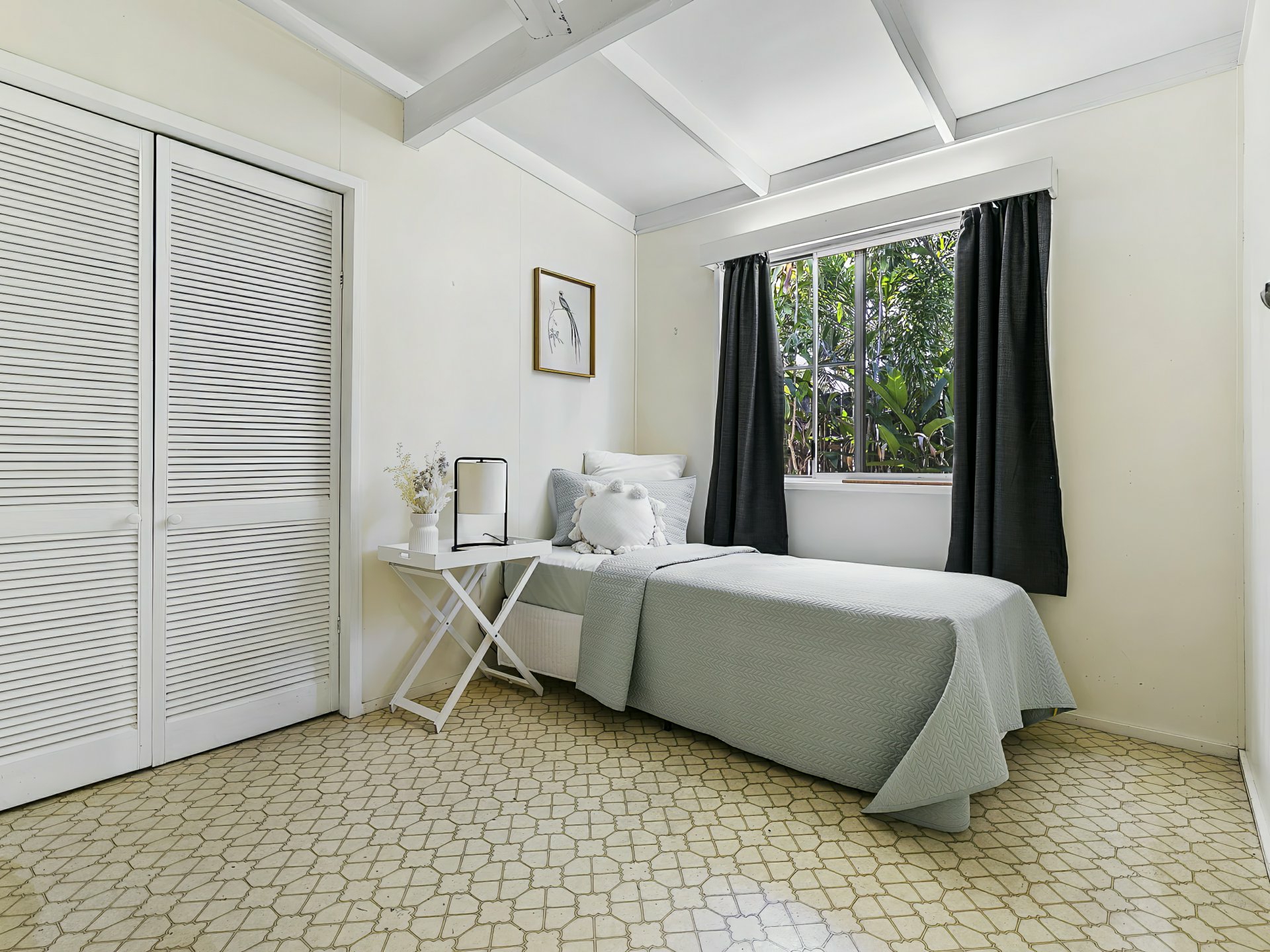 A water tank once stood near the avocado tree, used by the original owners to water the backyard market garden. While the yard does pool with water during cyclones and heavy rain, it’s never caused damage — just a temporary, tropical quirk.