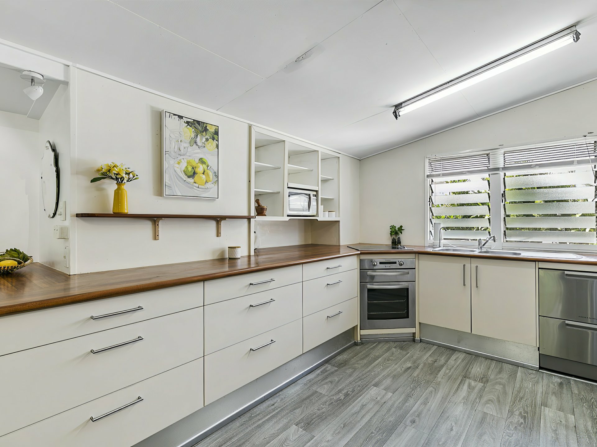 Perched on one of the highest points in Yorkeys — aside from the Knob itself — this charming Queenslander cottage has stood the test of time. Originally built in the early 1950s and relocated here from elsewhere in Yorkeys Knob, its journey is as unique as the home itself.
