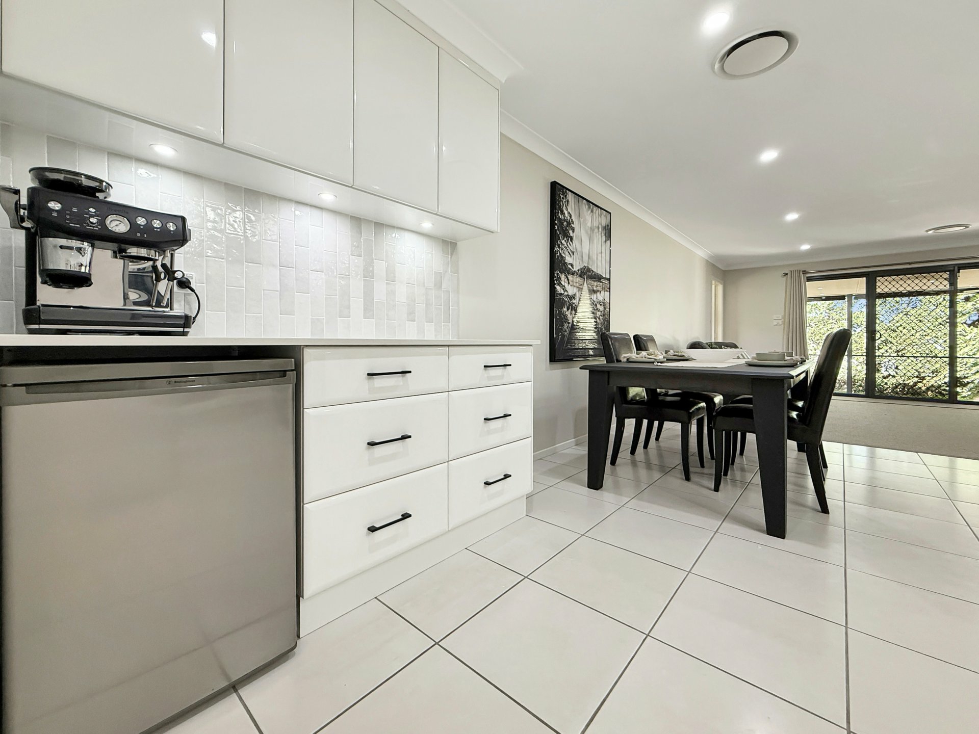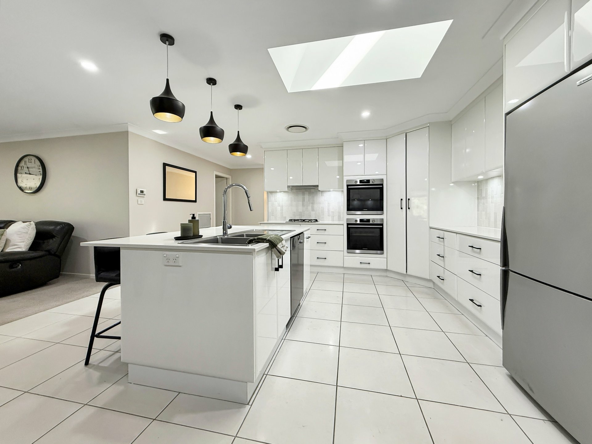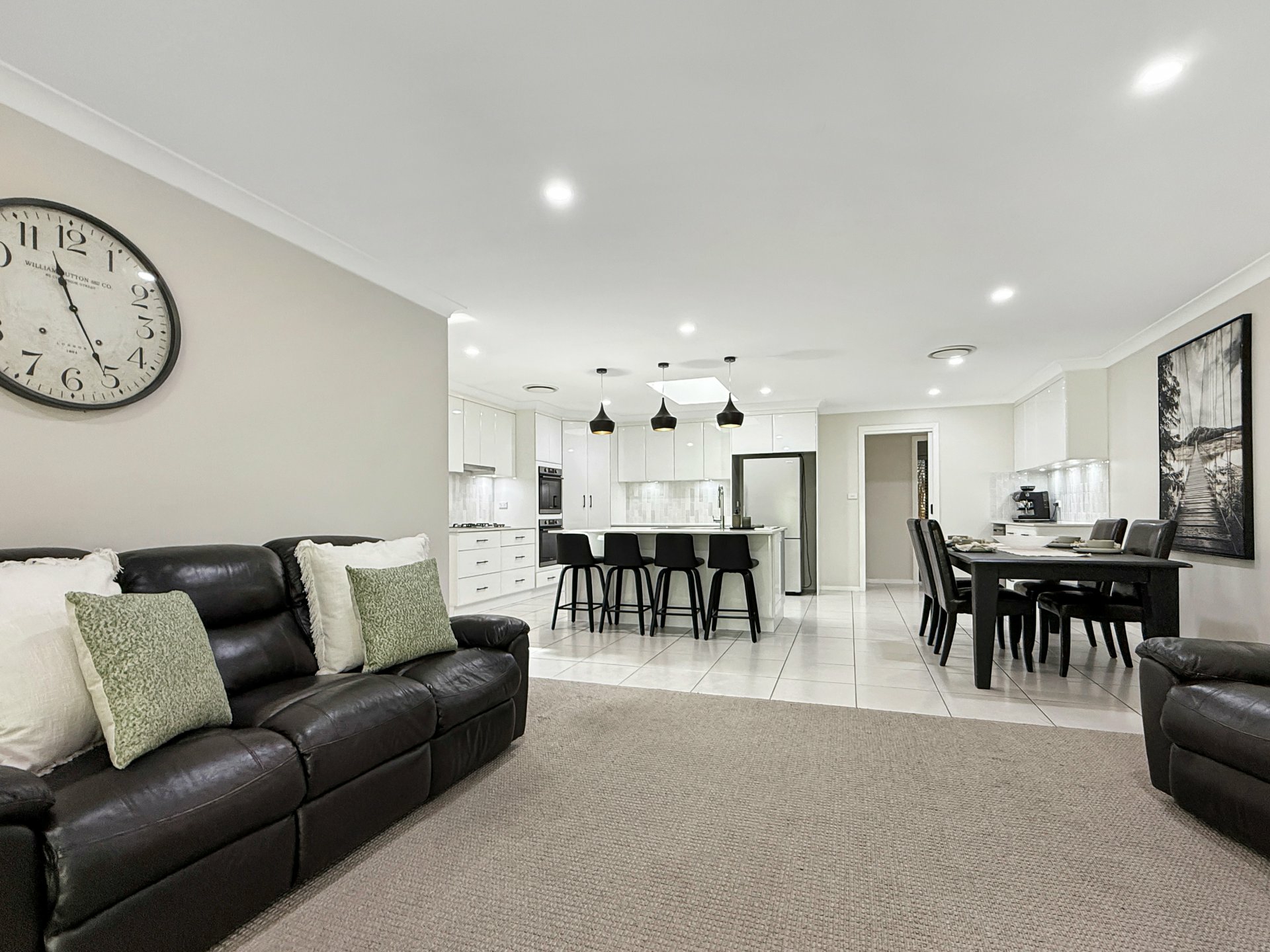 Set on a generous 874m² block, the home has been thoughtfully designed for both everyday comfort and effortless entertaining. A stylish kitchen sits at the heart of the home, featuring stone benchtops, double ovens, a Miele dishwasher, and a dedicated bar or coffee station. Flowing from here are spacious open-plan dining and family areas, complemented by a large formal living room, offering flexibility for growing families.