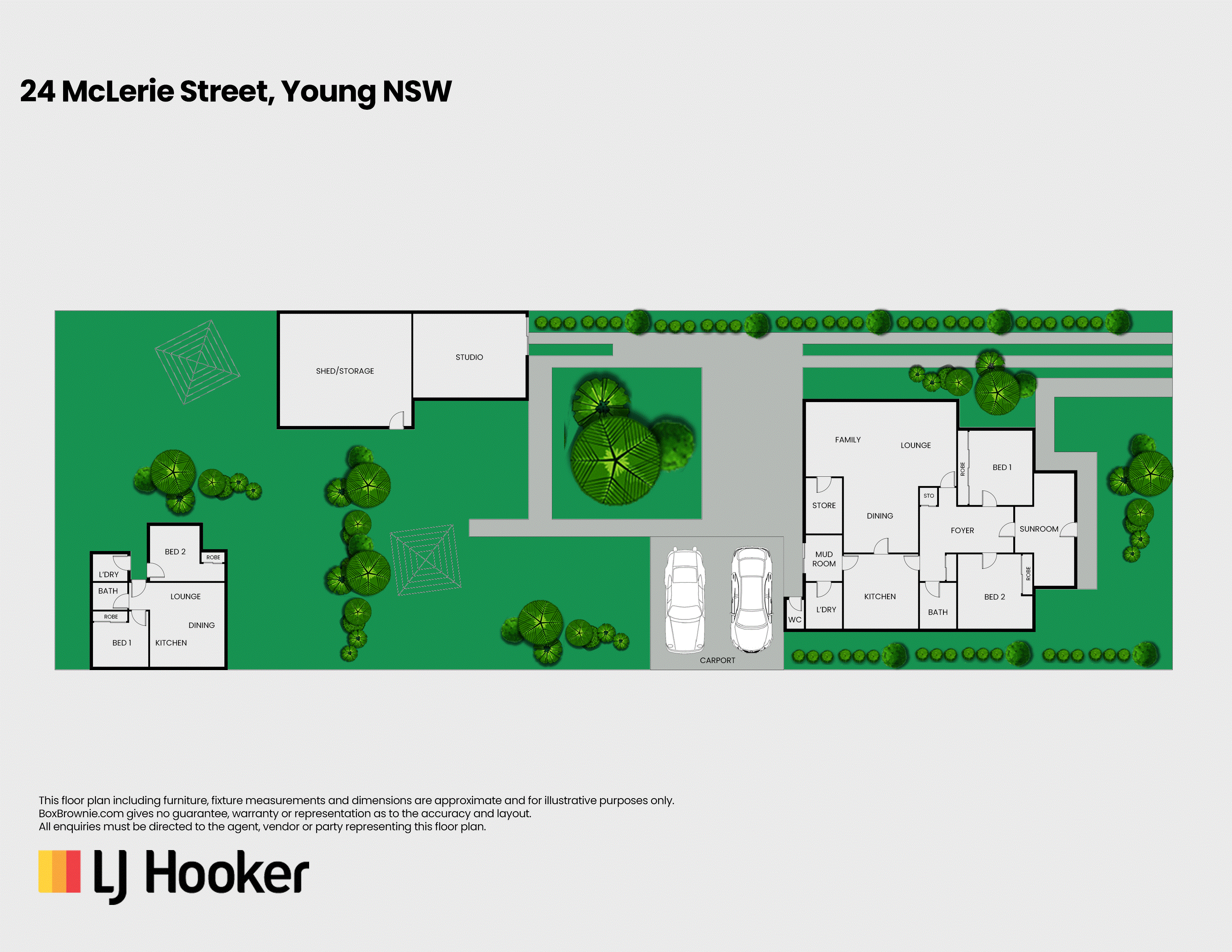 Outside, the property continues to impress with plenty of space and versatility. A double carport provides convenient parking, while a separate studio and a substantial 6m x 7m shed offer excellent storage, workspace or hobby areas. Adding further appeal is a detached two-bedroom granny flat, ideal for extended family accommodation, guests or potential additional income.