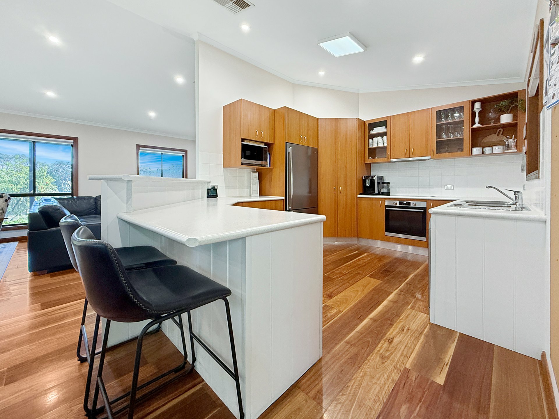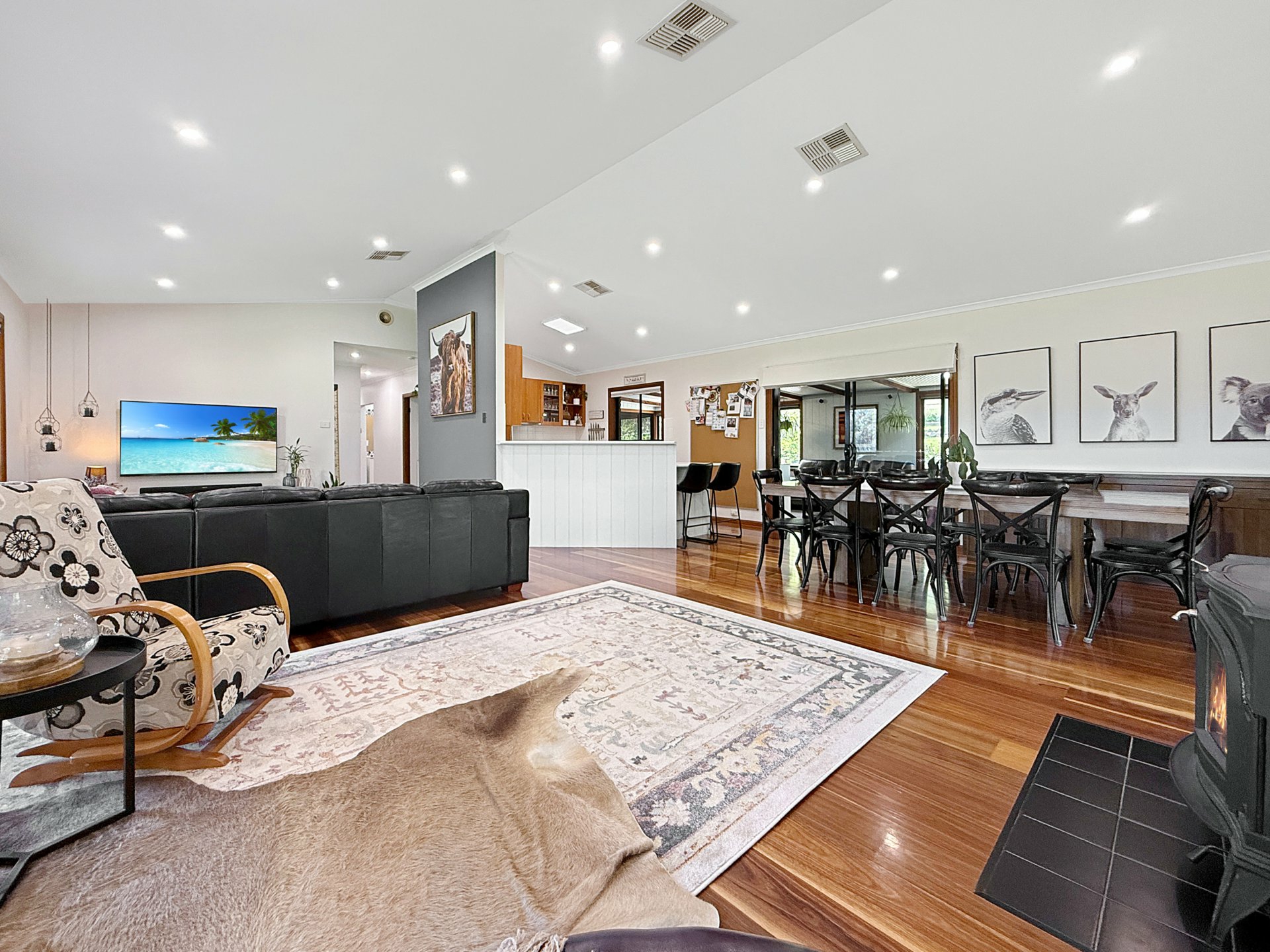 The brick veneer, steel-framed home presents beautifully with new blinds, LED lighting throughout and a tasteful, modern colour palette. Inside features multiple living zones including a family room and a light-filled open plan raked living area incorporating lounge, sitting and dining, complemented by a practical mudroom at the rear. Spotted gum engineered flooring flows throughout, while the home offers four bedrooms (three with built-ins), and a master with walk-in robe and renovated ensuite. The central three-way bathroom has also been stylishly updated, and the modernised kitchen includes a breakfast bench and new quality appliances. Comfort is assured year-round with ducted evaporative cooling, a wood heater with transfer system, and three split system air conditioners. An undercover, insulated entertaining area overlooks a well-designed beer garden, complete with an external third toilet.