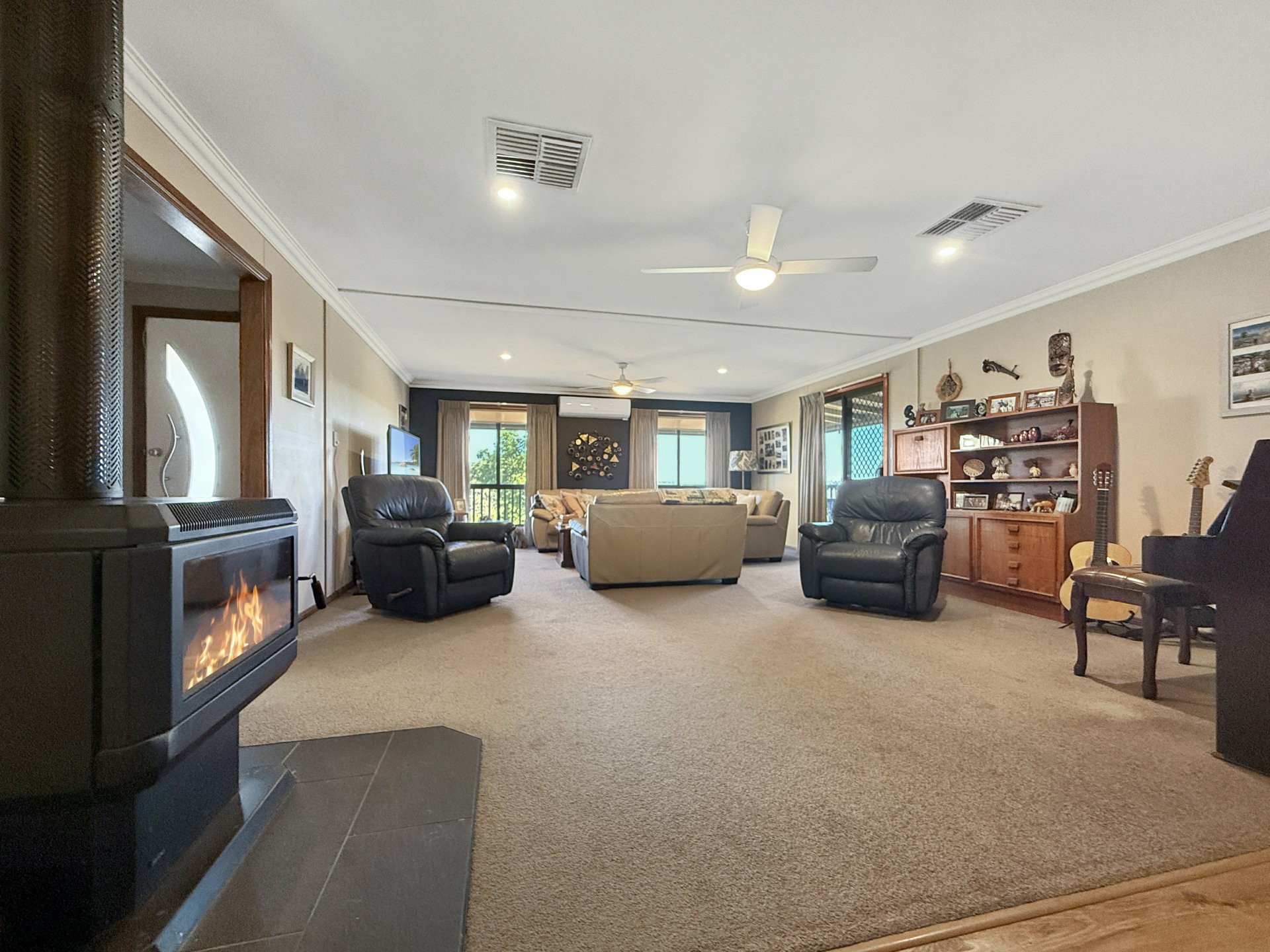 - Featuring a large wood heater in the super spacious living room, 3 split system air conditioning units, ducted evaporative cooling, as well as ceiling fans to the bedrooms and living areas, the climate control is well and truly catered for.