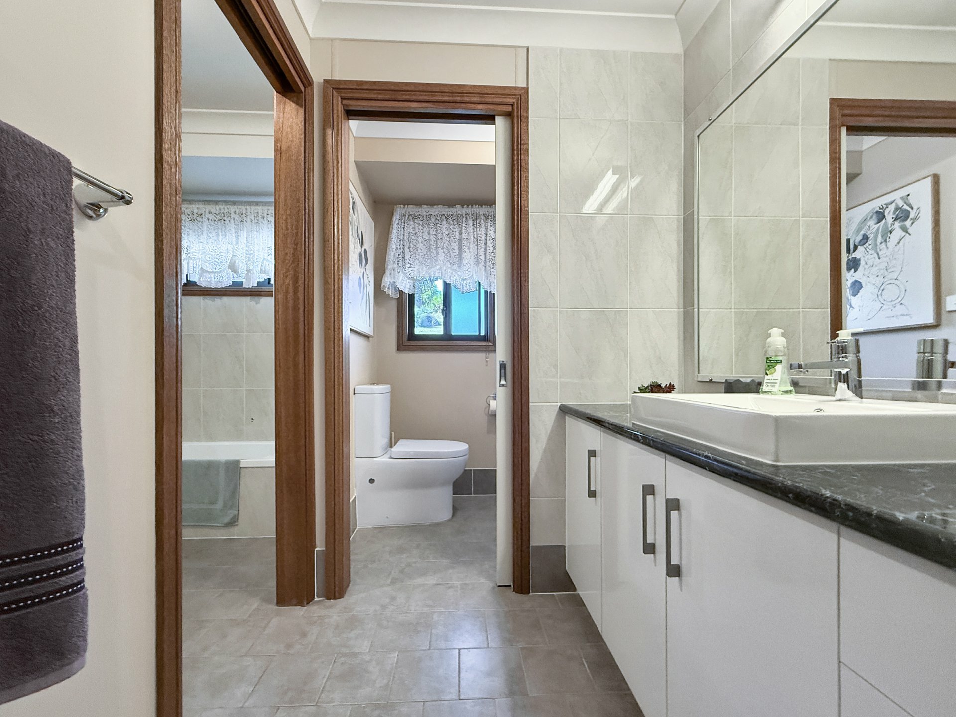 - The main bathroom is a 3-way configuration with additional access to the toilet from the very large laundry which has loads of storage and bench space.