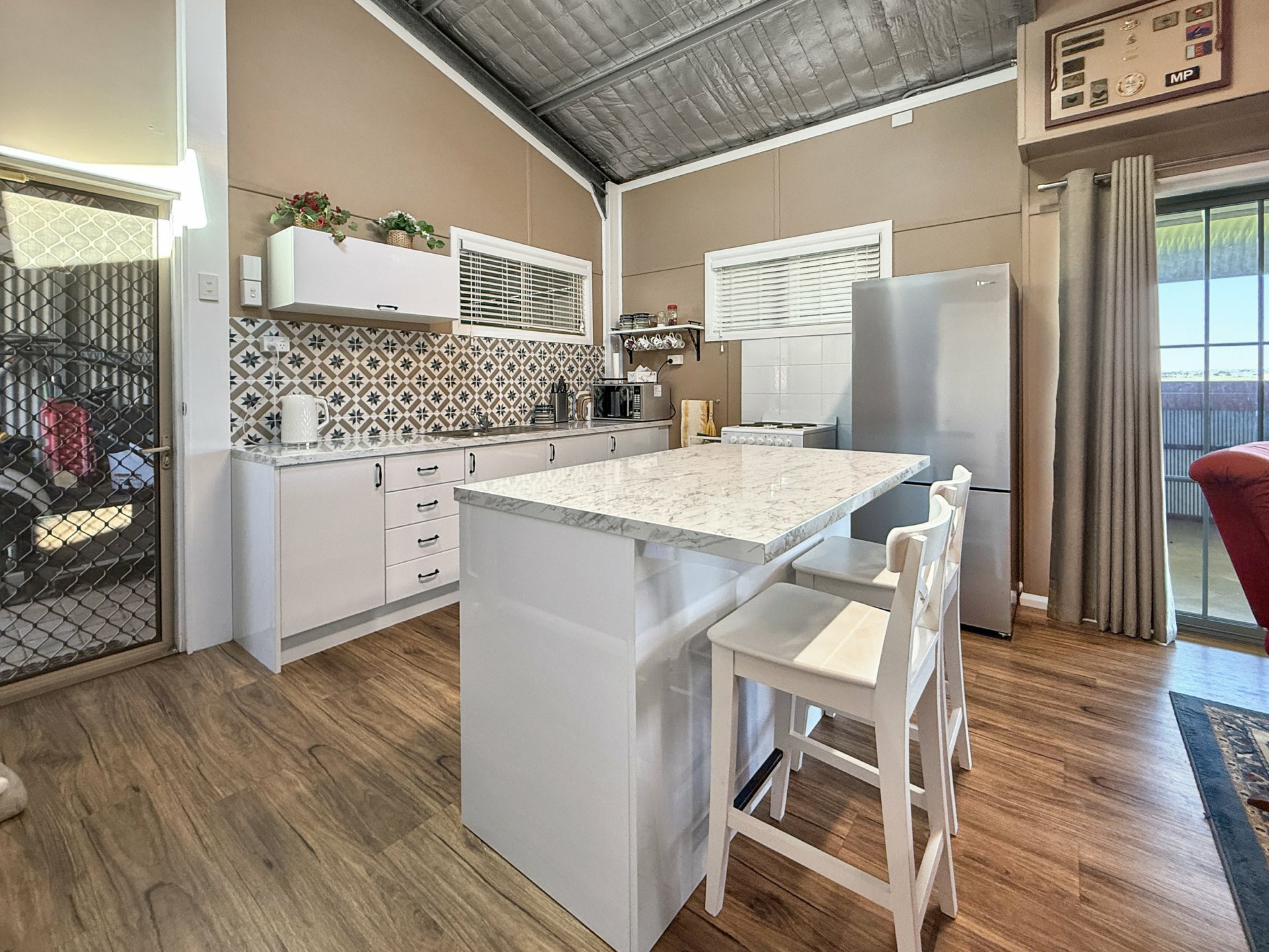 - The granny flat is an addition that needs to be seen, open plan in design it has a new kitchen, carpet & vinyl planks, renovated bathroom, sizable living space with 3.5kw split system air-conditioning and well as the ever reliable “turbo ten” wood heater. The bedroom is separate and has a glass sliding door that opens out onto the covered outdoor area which overlooks the fully enclosed yard provided with the granny flat. Privacy is assured with shedding in between the house and the flat.
