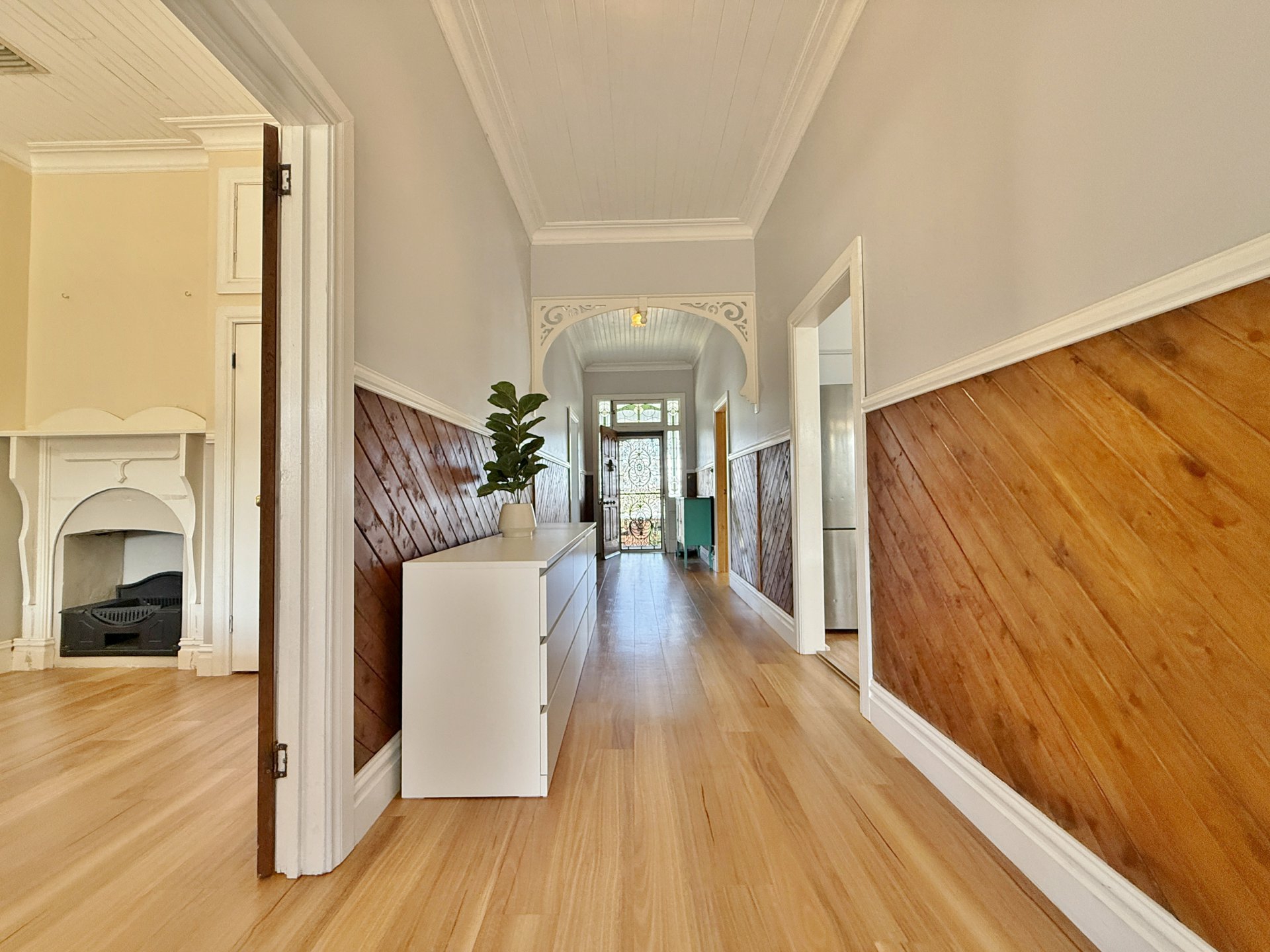 Lovely period features including wainscoted hallway, tall ceilings, decorative cornice & ceiling roses.