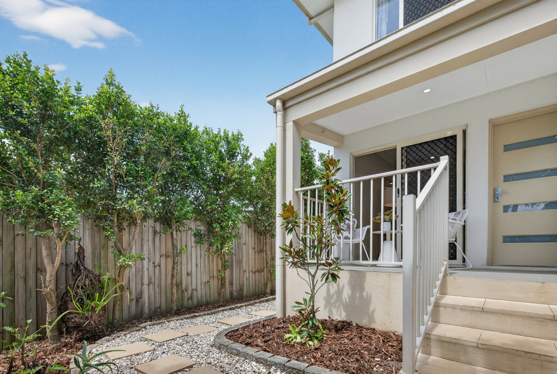 • Set behind a secure rendered fence, the quaint front path and garden leads up to a sunny veranda and entrance.