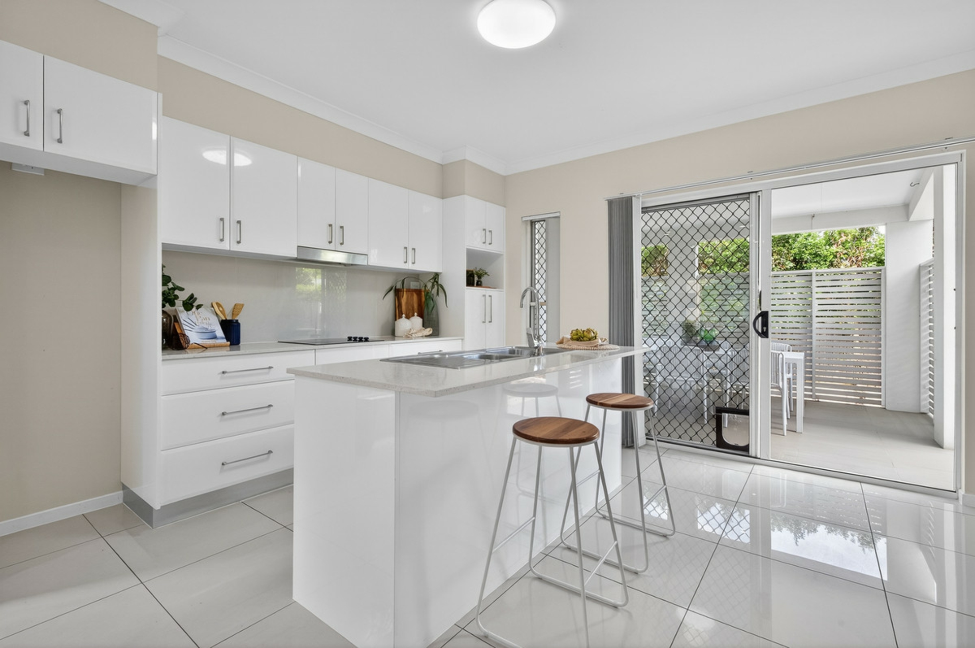 The townhome provides a two-level floorplan, which includes an open plan living/dining area with high ceilings, Caesarstone kitchen with Island bench, 3 sizeable bedrooms, 2 well-appointed bathrooms and a large covered alfresco area that extends down to a landscaped backyard.