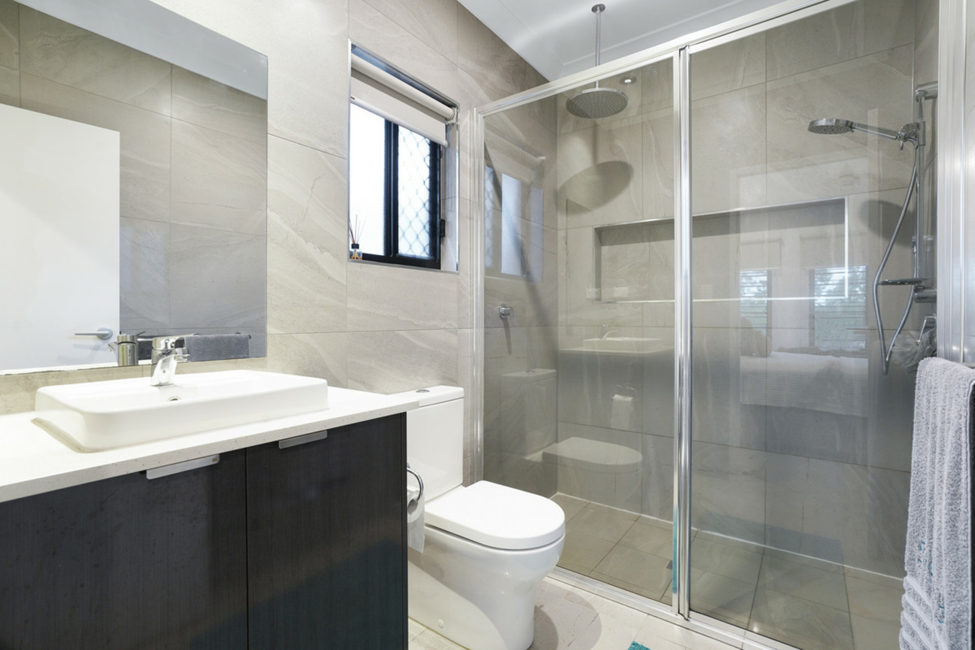 • Separate shower and bath in main bathroom