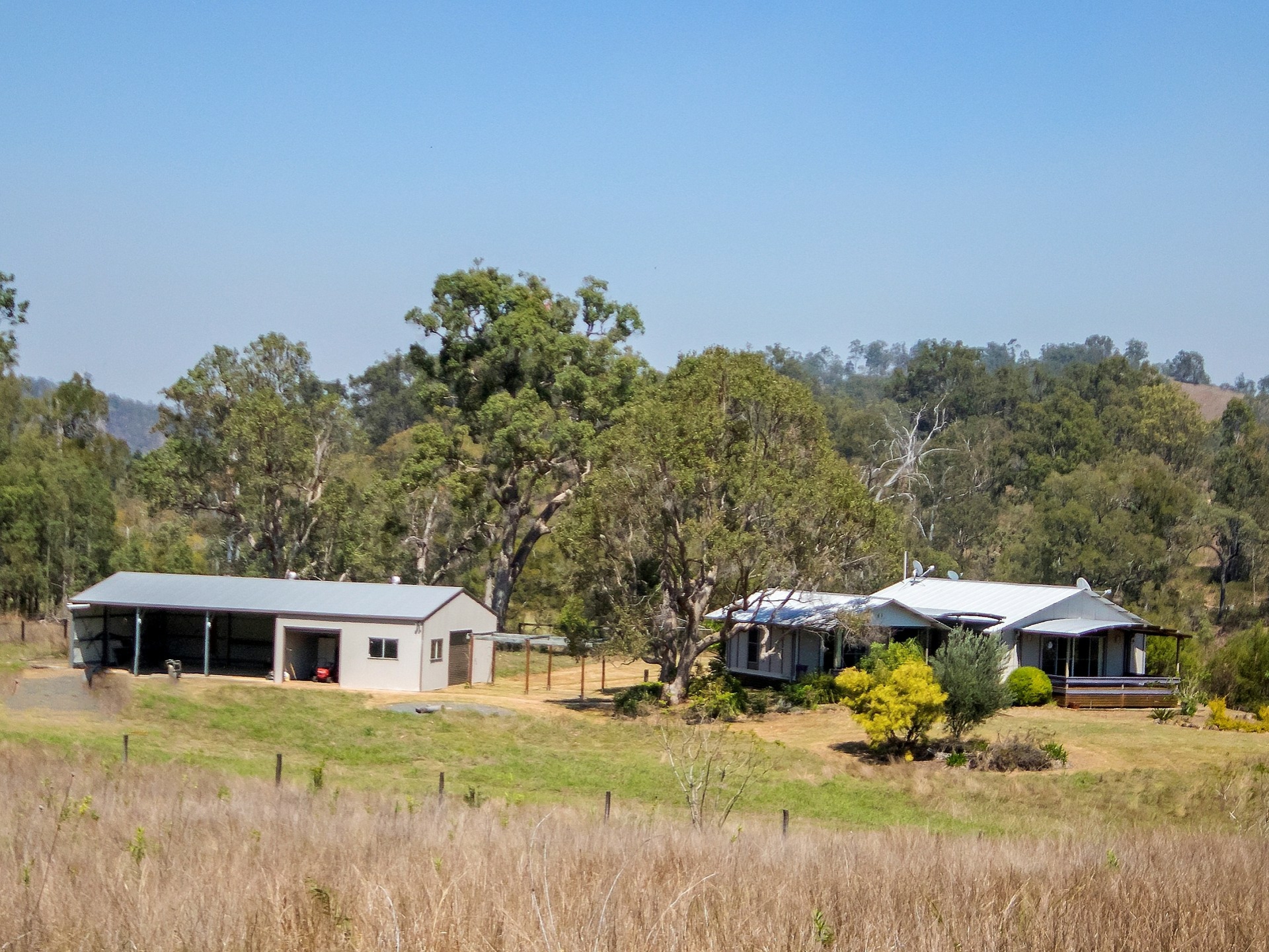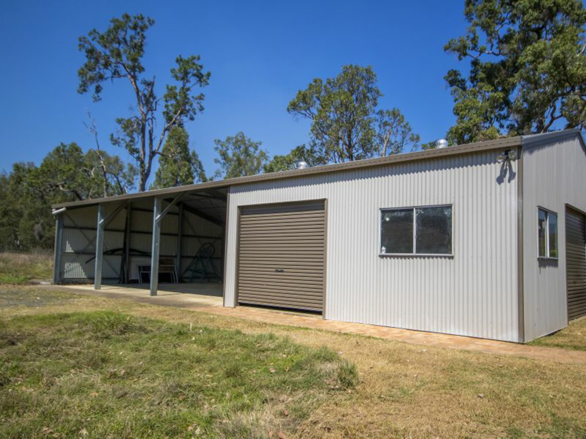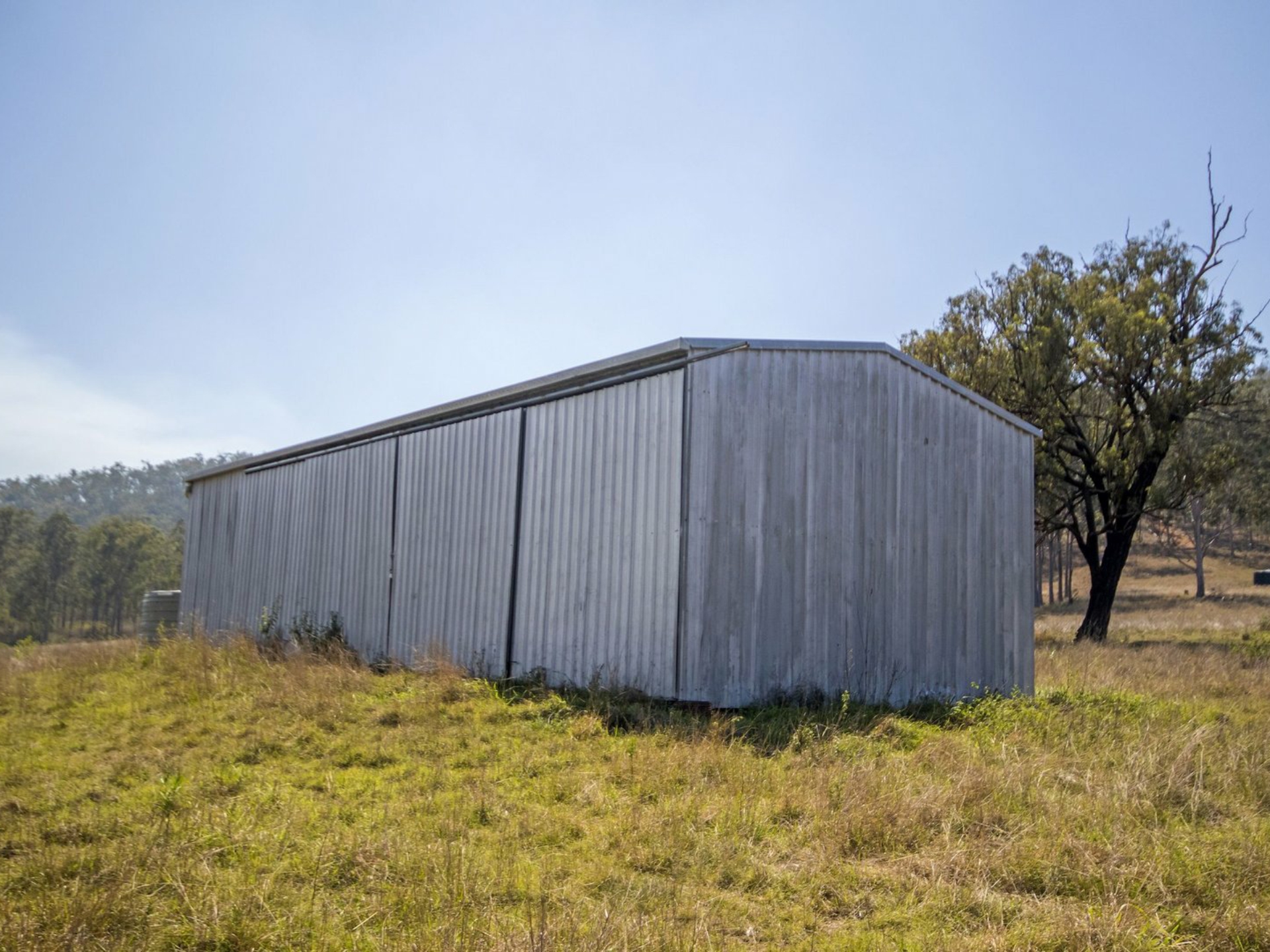 OUTBUILDINGS: Lockup machinery shed (approx. 16x6 m) with sliding doors, 5,000 gallon tank connected to shed. Colourbond shed adjacent to the home (approx. 16 x 9m) two lockable bays with roller doors and three open bays. Features power, concrete floor, toilet and hot water system, 5,000 gallon water tank and pressure pump.