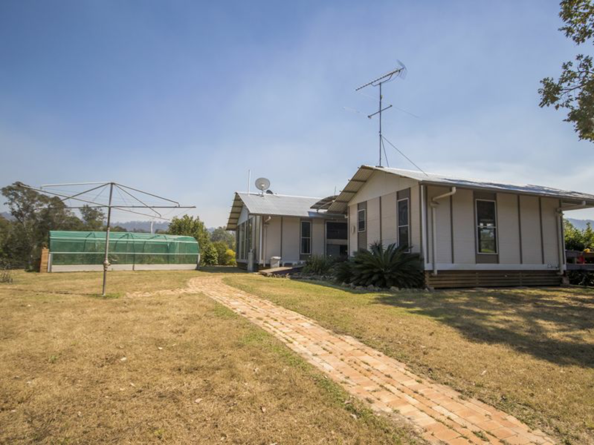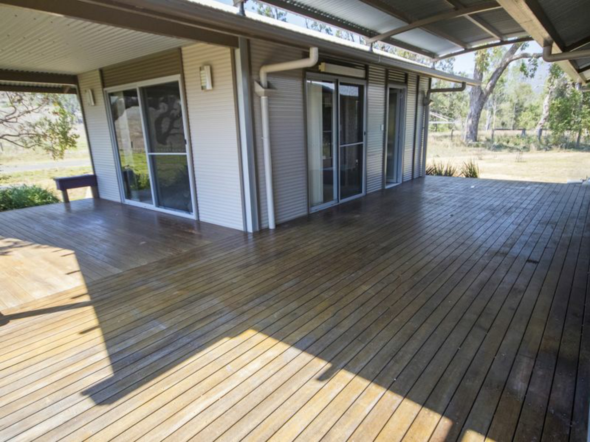 RESIDENCE: Three bedroom, steel and colourbond home built in 2007. Master bedroom separated from main living area and two bedrooms with a covered breezeway incorporating the front deck. The master bedroom is palatial complimented by an en-suite (shower, toilet & vanity), walk-in-robe and a reverse cycle air-conditioning unit.