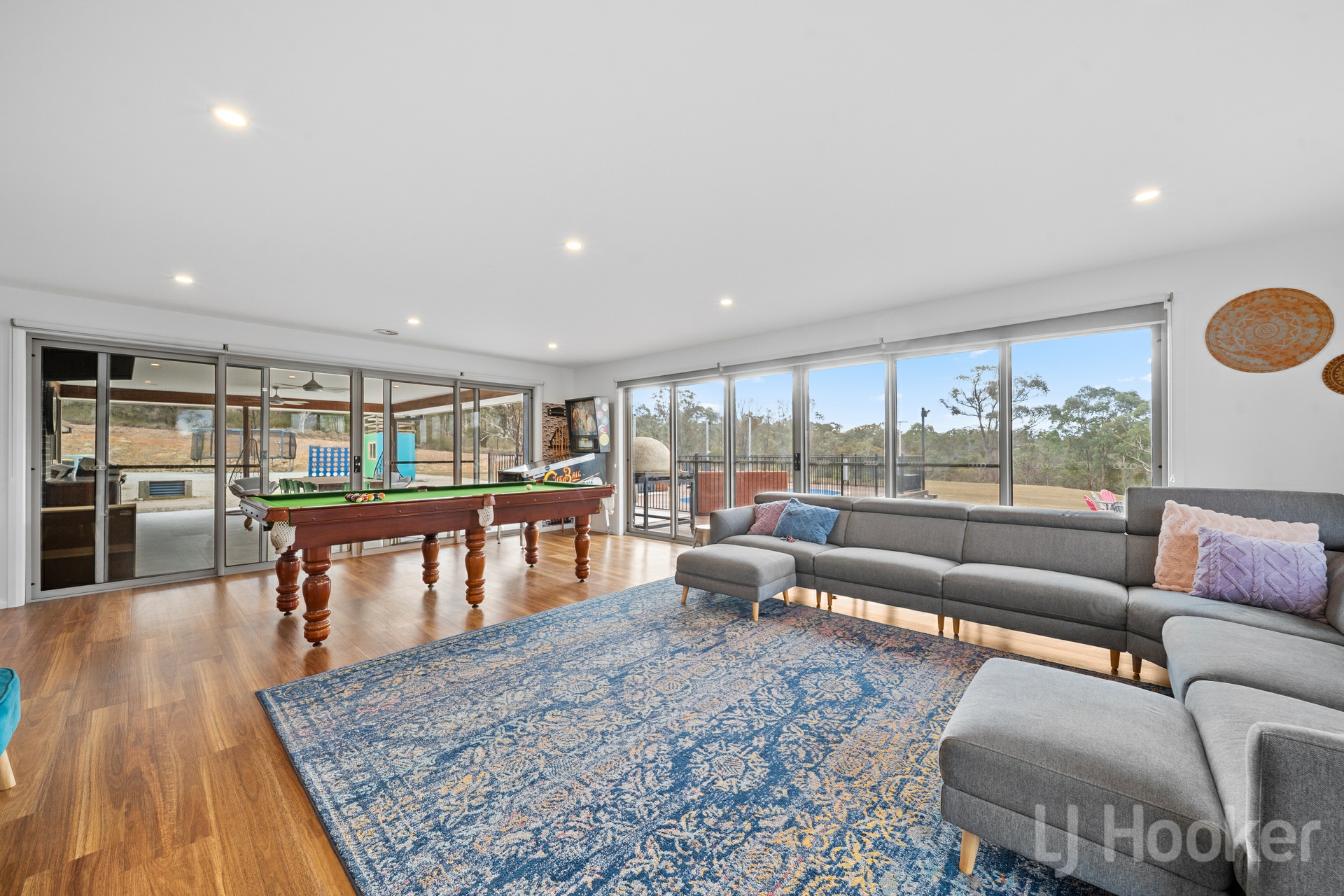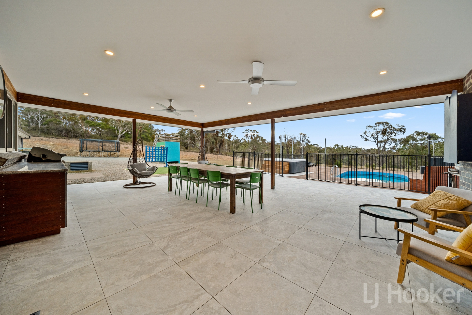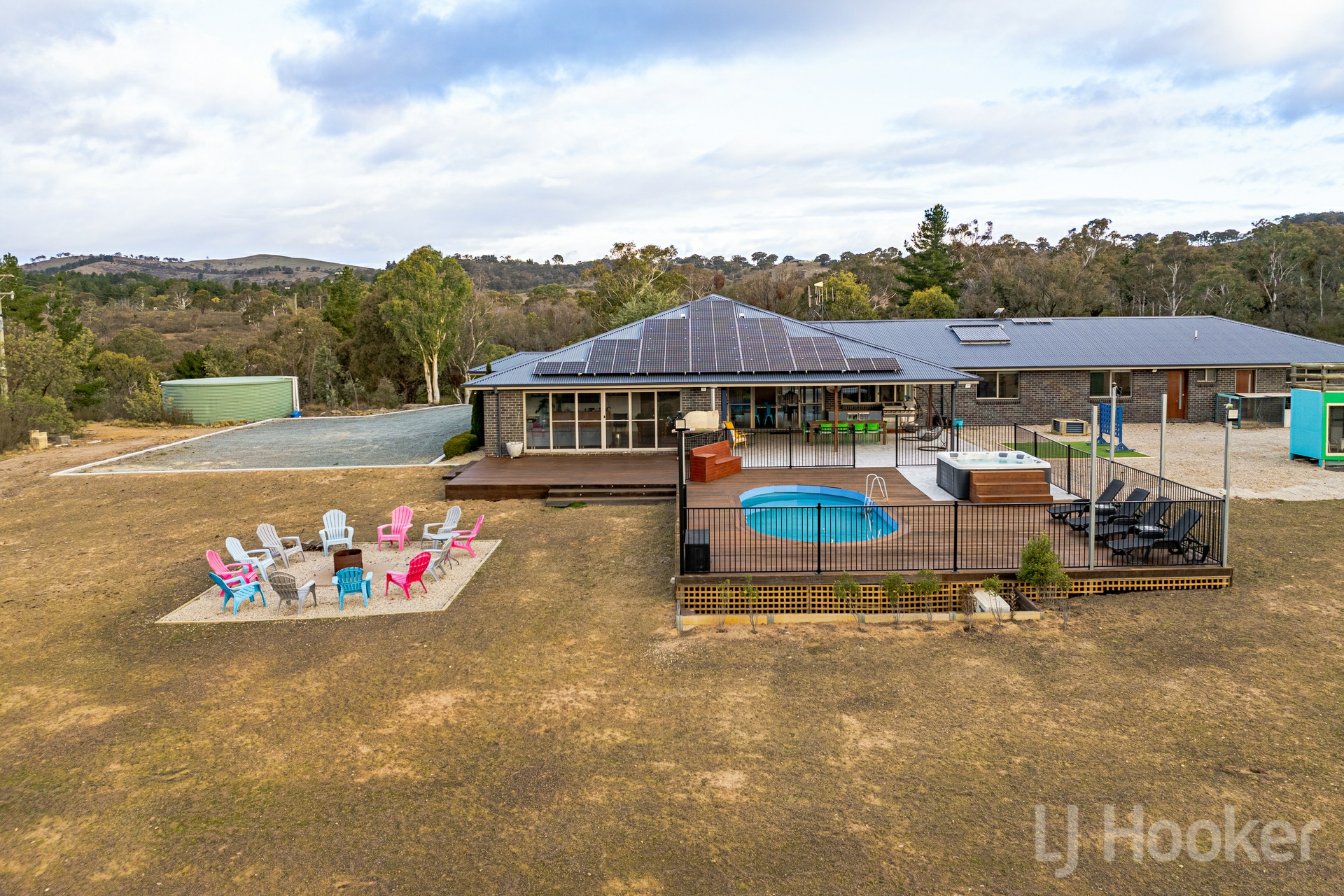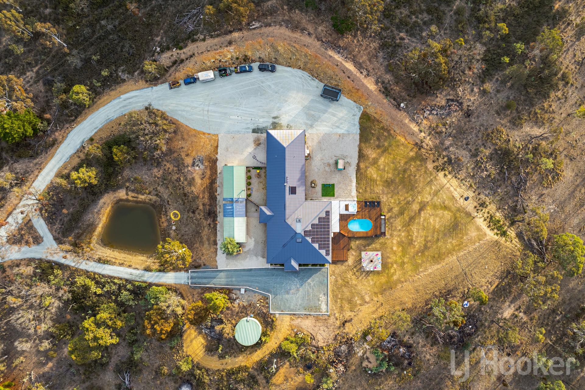 Comfort is assured year-round with zoned ducted heating and cooling, double-glazed windows, full insulation, 9.6kW solar, solar hot water, and a 120,000L tank.