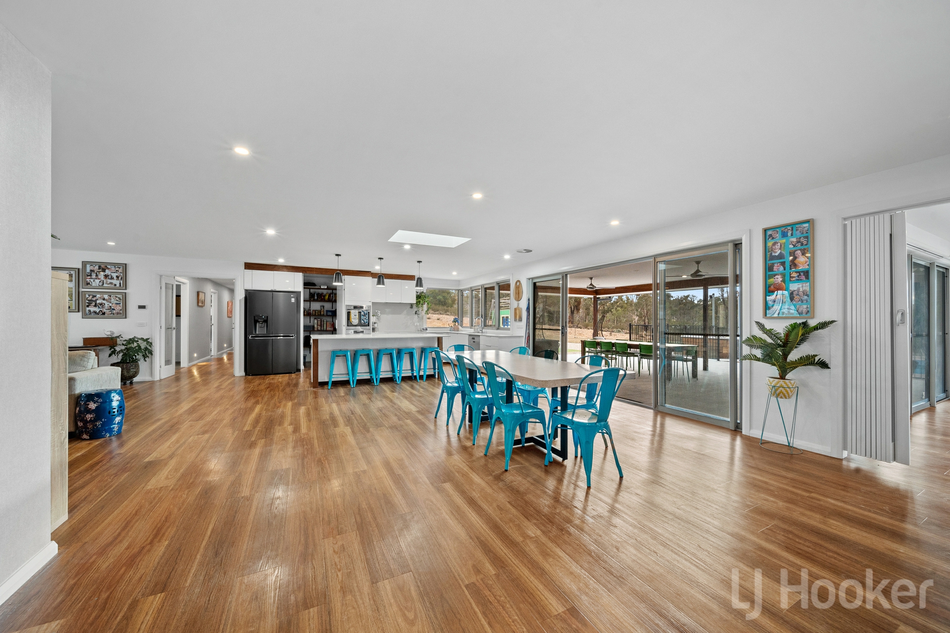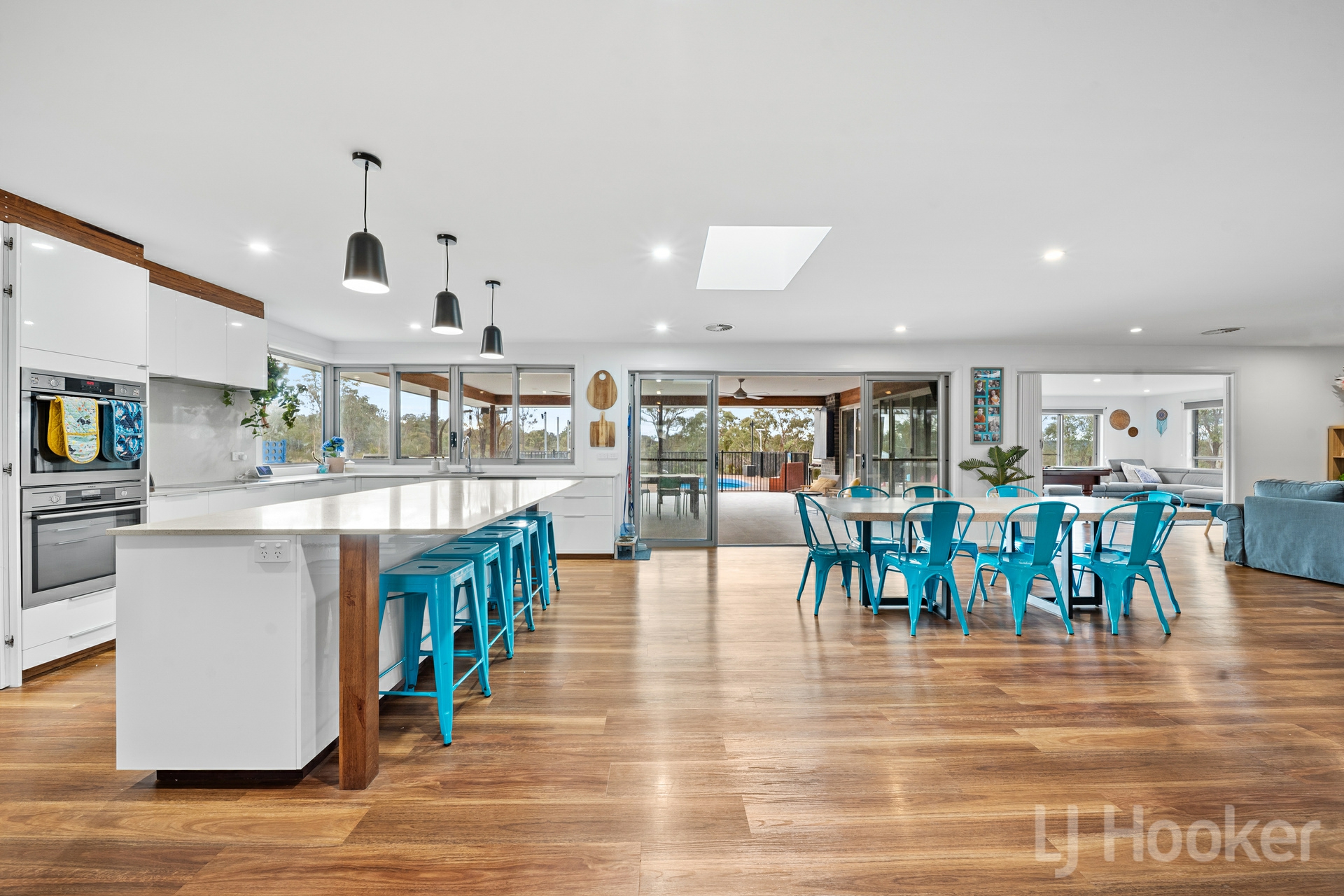 The eight-year-old home is immaculately presented, featuring five generous size bedrooms with built-in robes (plus a sixth if needed), three bathrooms, and three generous living areas including a versatile rumpus room. The master suite is a standout, with a stylish ensuite with double walk-in shower and spa bath as well as a walk-in robe, while the open plan layout flows effortlessly and is filled with natural light from skylights and remote blinds.