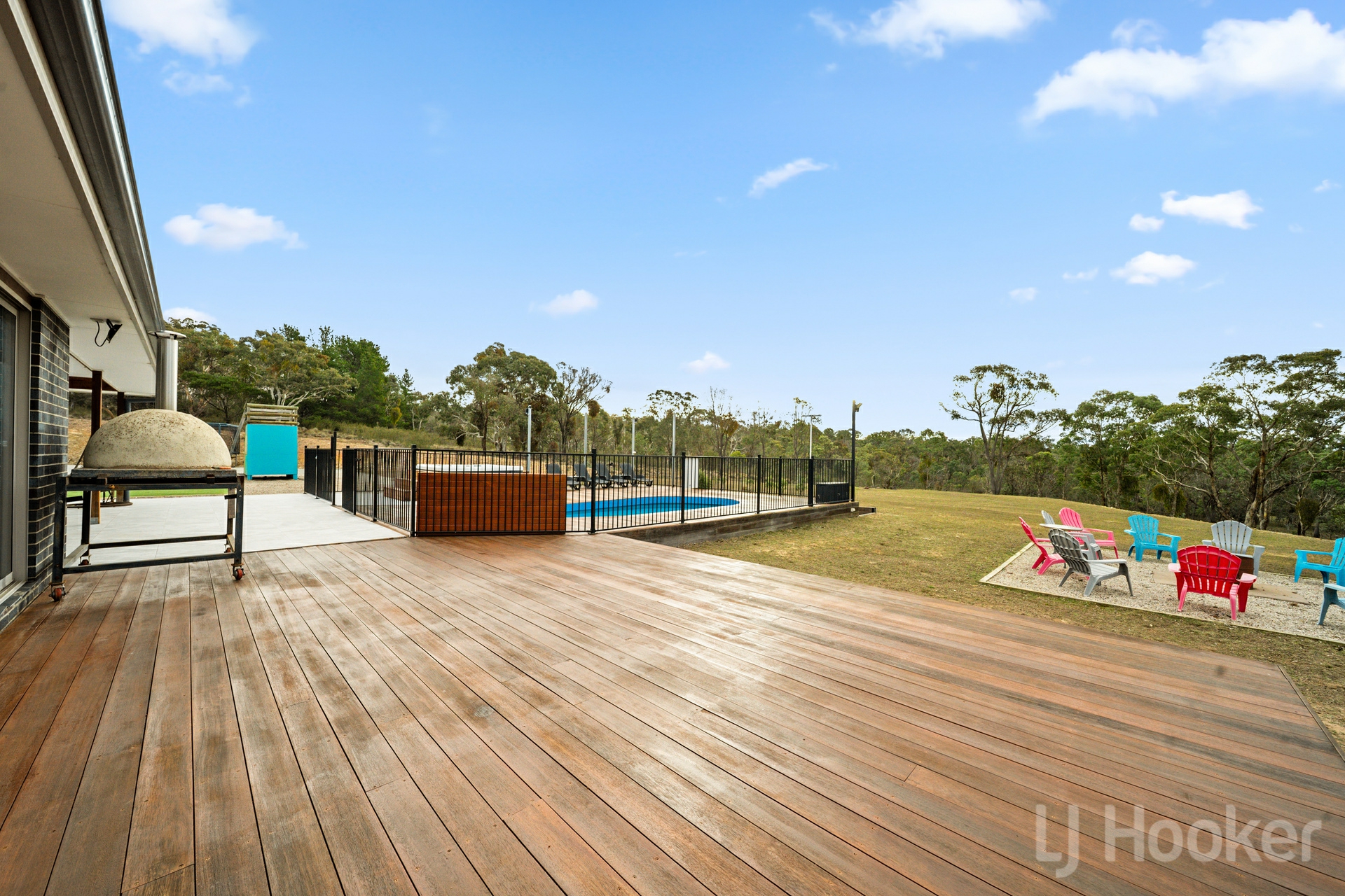 Outdoors, enjoy a heated pool (heat pump) with timber decking, covered alfresco with built-in BBQ and fridge, firepit area, outdoor bathroom access, and loads of space for the kids and pets.