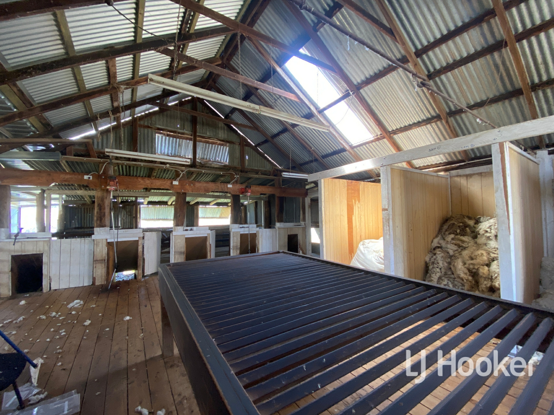 Steel hay shed of 4 X 8m bays, large roof over stock yards and attached rooms, 4 stand sheering shed, new yards and extension to the shed. Cattle yards.