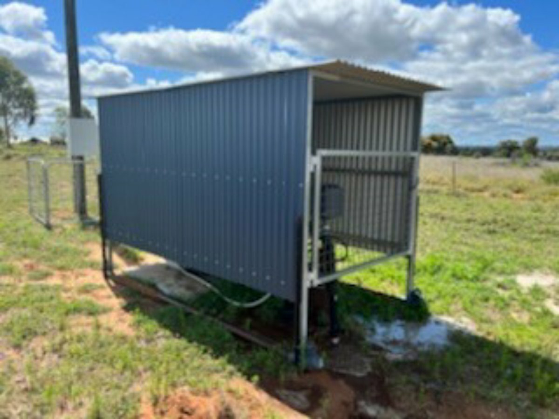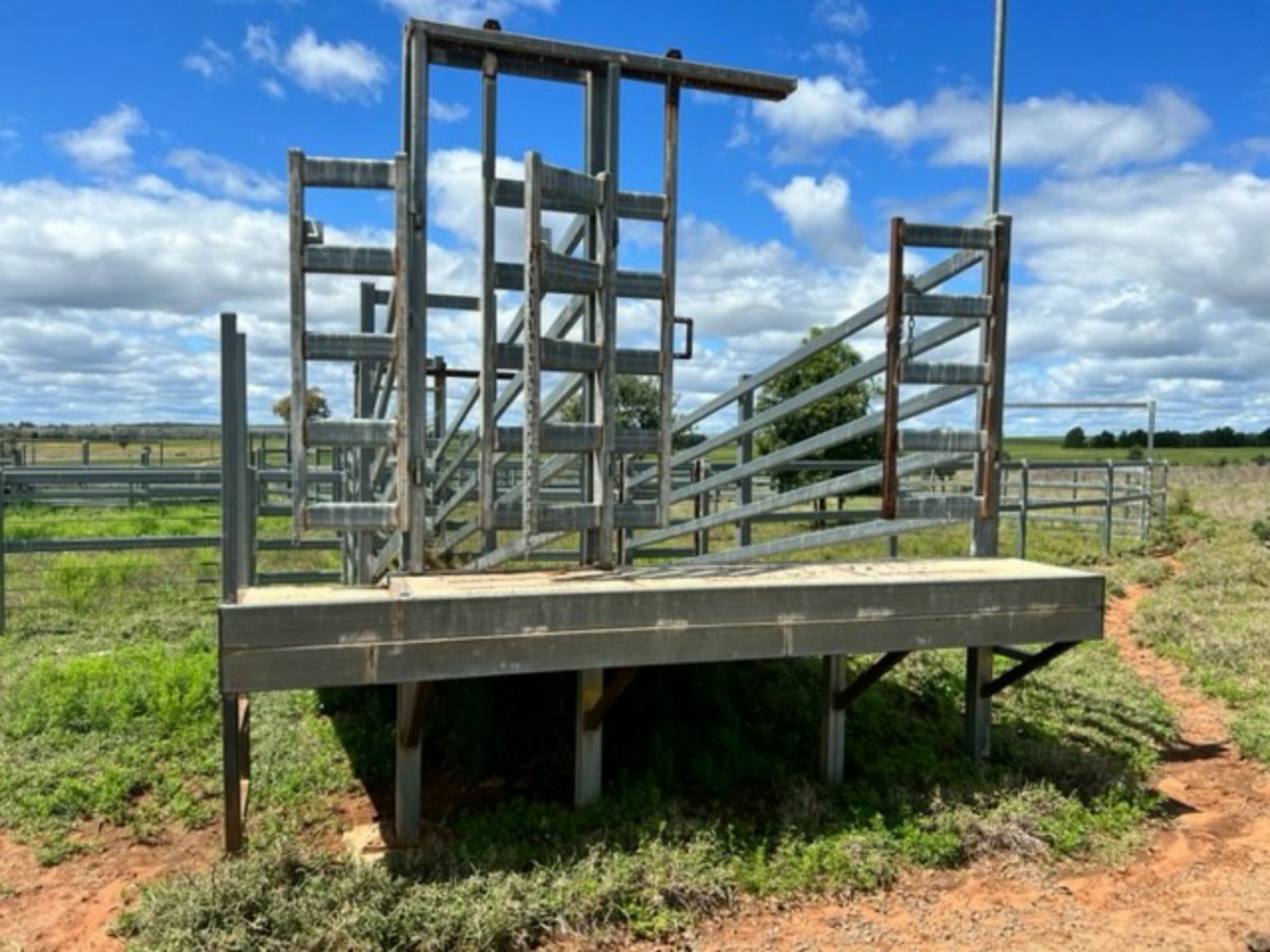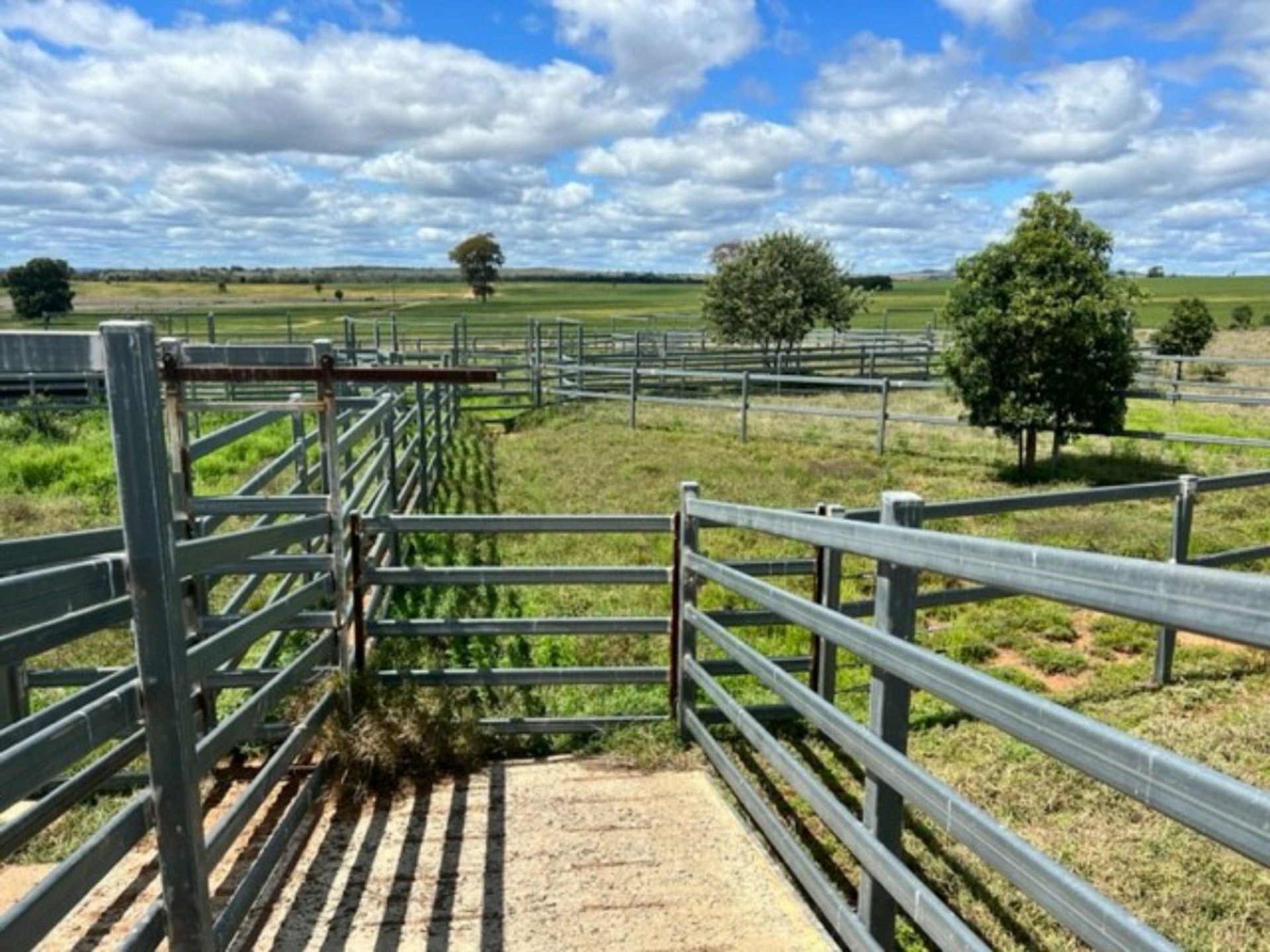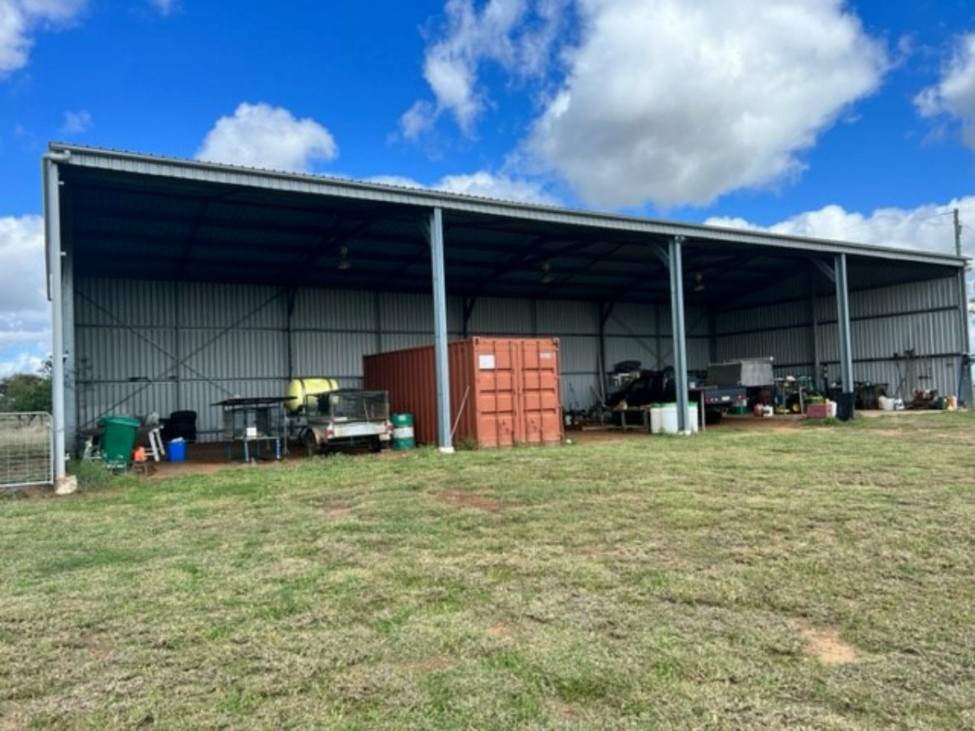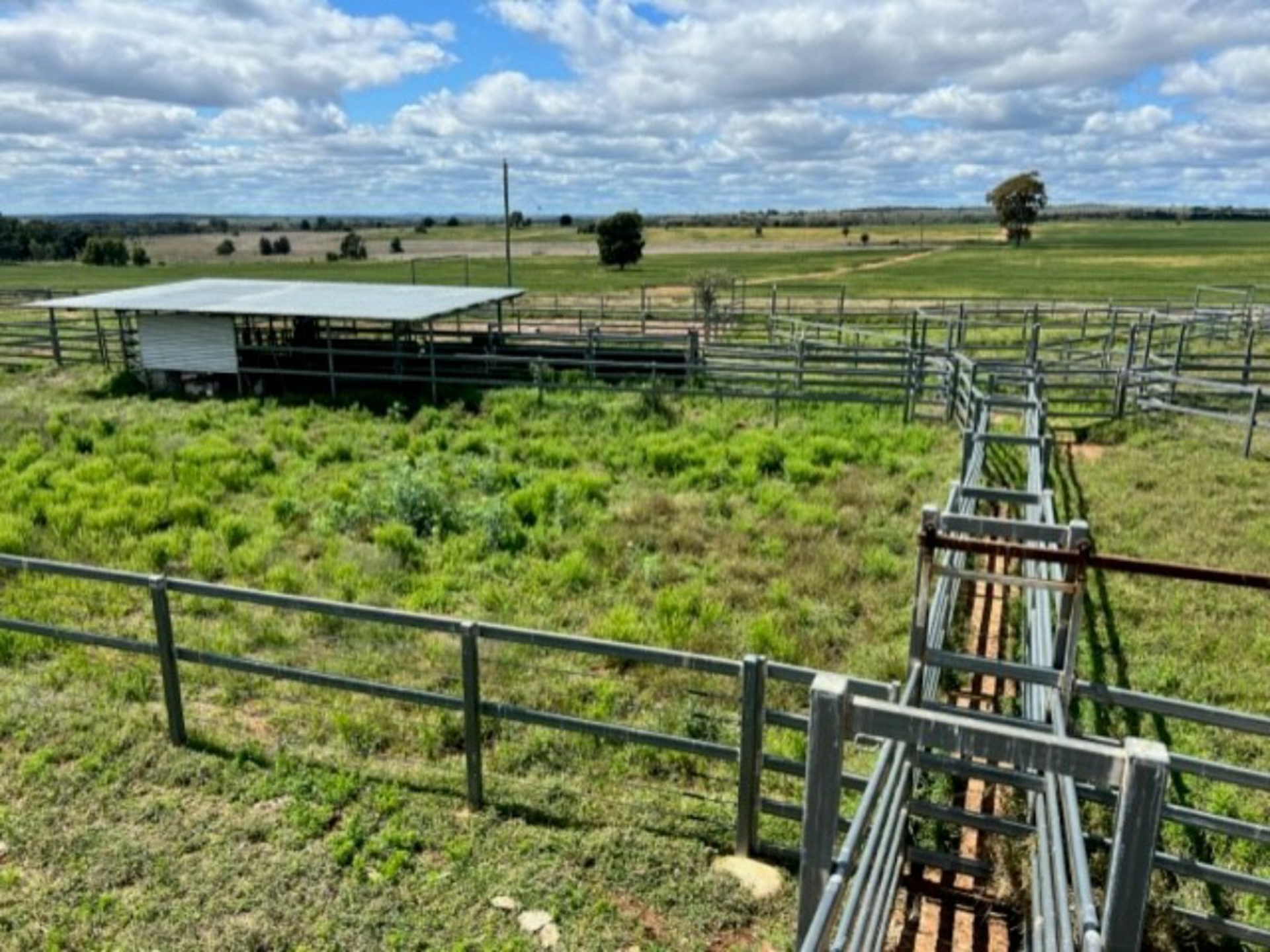 Improvements: Large wide span 4 bay machinery shed 28m x 12m X 5.7m with power. 1 bay cemented, 3 bays dirt. Set of steel yards which were built in 2014 with cattle rail and cable. 6-way draft, crush under roof, 2 ramps and has a working capacity of 500-600 head.