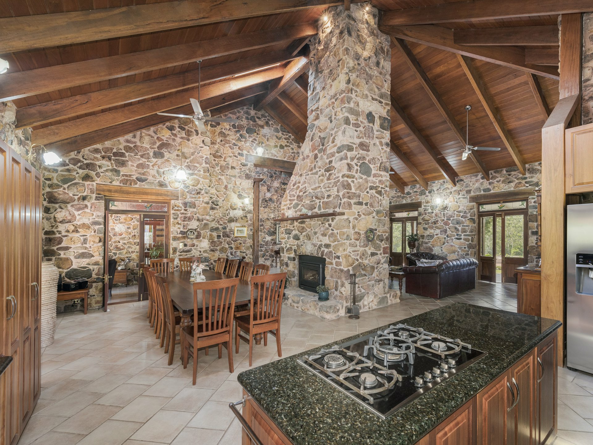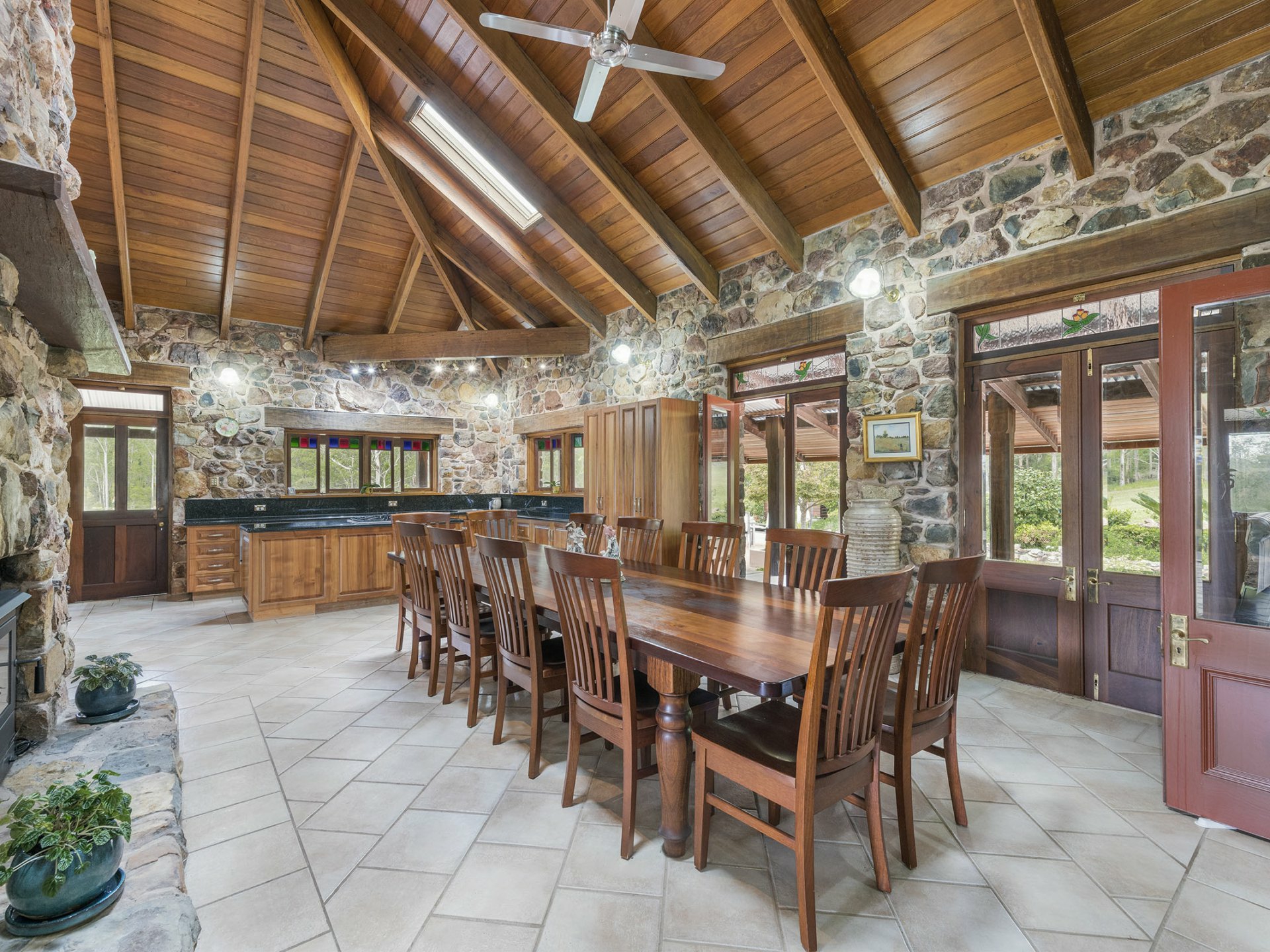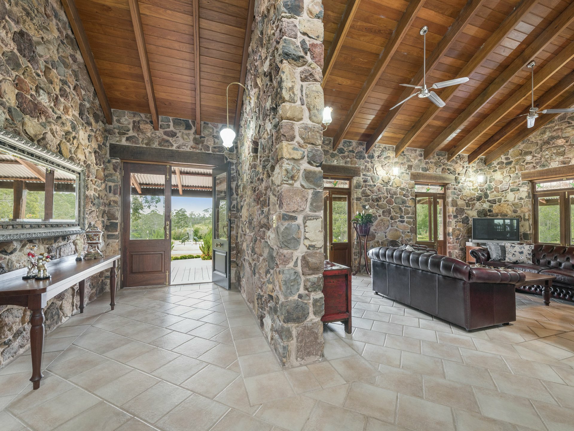 A vast and opulent grand entry welcomes you. The eyes are instantly drawn skyward to the 23ft hardwood raked ceilings that envelopes the 40cm thick stone built walls, solid hardwood timber beams and Jarrah doors with custom bevelled edge glass that showcase the incredible depth of construction. It is evident from the true craftsmanship and the elegantly tactile setting that the rest of the home is sure to leave you positively speechless.
