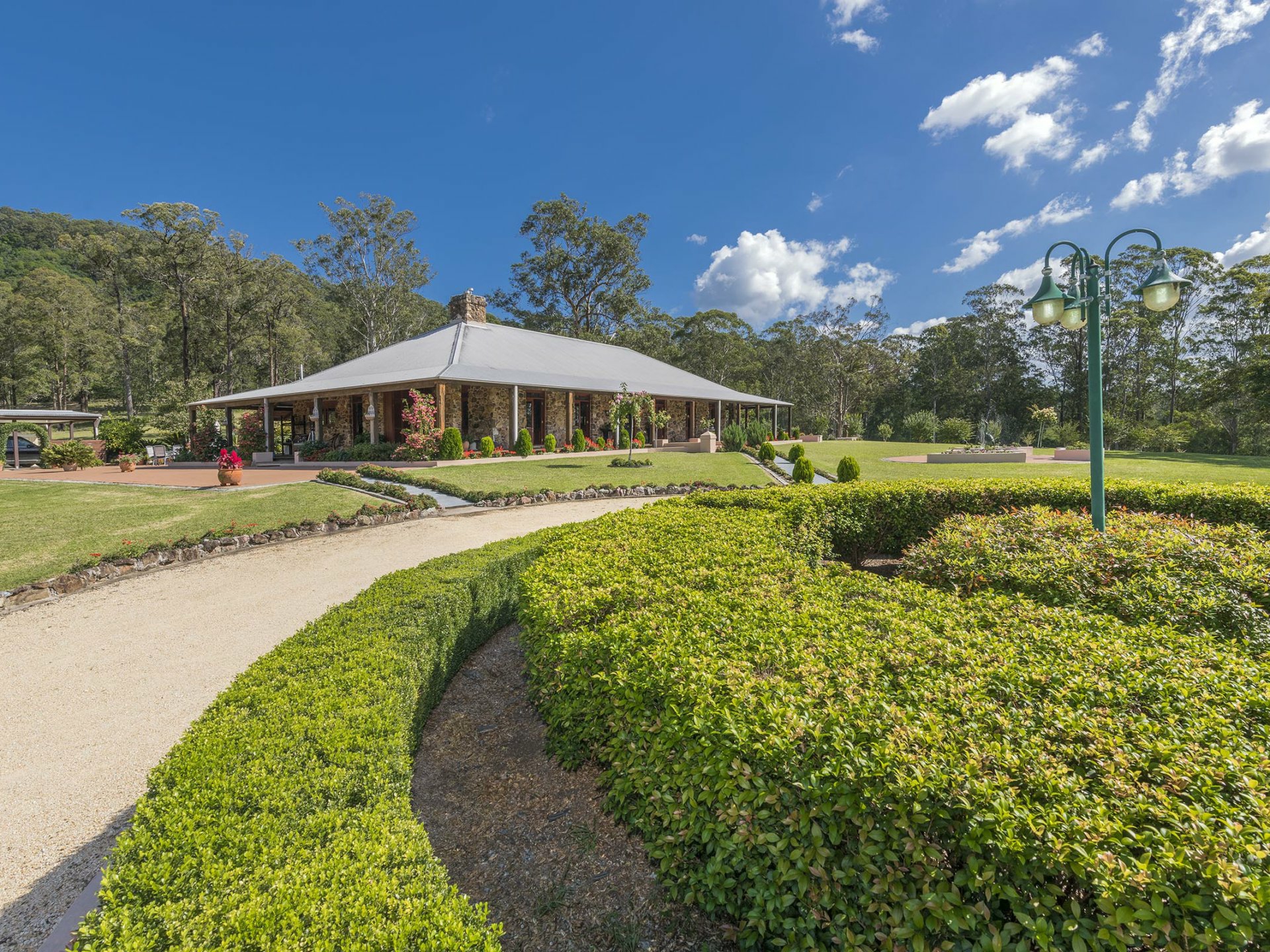 "Tamarind Lodge" - a true masterpiece home set upon a grand estate of 112 acres (45.29 hectares) northwest of the boutique township of Wingham in the Wherrol Flat province. A rising mountain backdrop and a verdant outlook over the attentively kept fields and gardens is sure to inspire reverie for the new owners. Each piece of this magnificent residence has been thoughtfully fused together to reflect a regal and stately air of quality, unmatched by any other home that you will find on the market for sale.