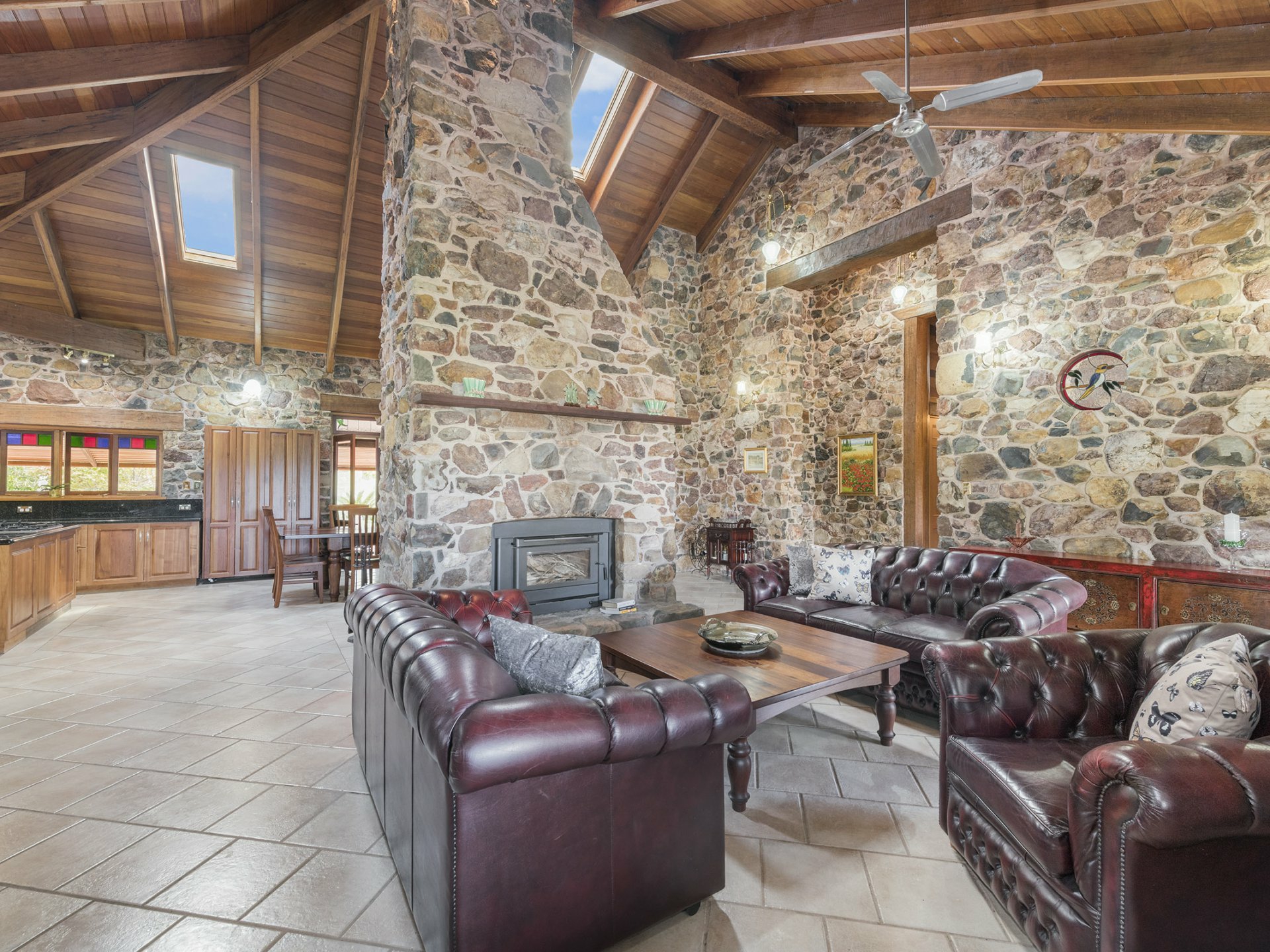 Totally unassuming from the road's edge and hidden behind a succession of established trees is a property unlike any you have seen before and may possibly see in your lifetime. Intricately stone crafted piece by piece over ten years by renowned stonemason, David Broadhurst to bring a spectacular property dream to life for the current owners who clearly have a finesse for detailed architecture.