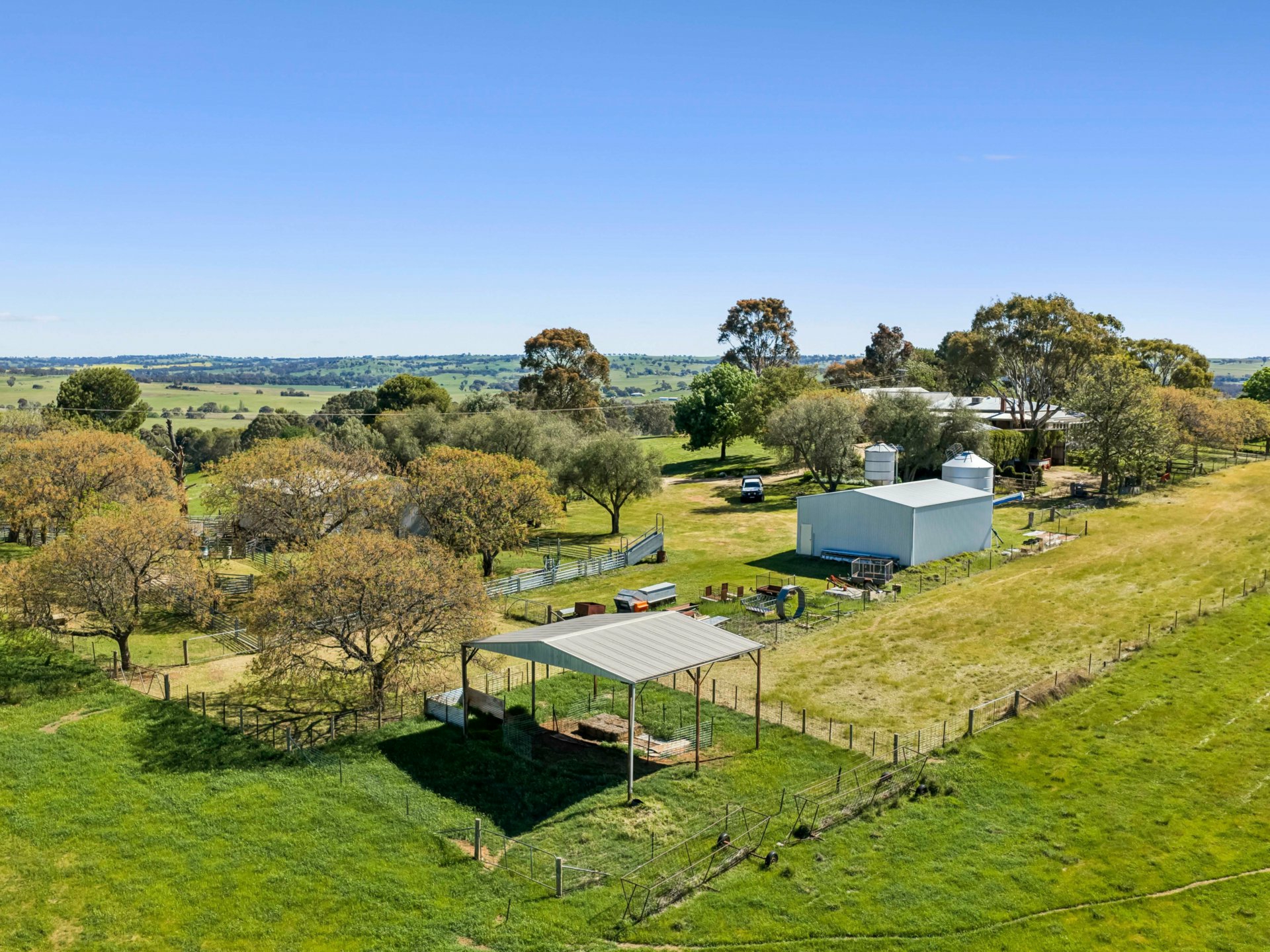 Nestled amidst gently undulating hills, Pleasant View lives up to its name, offering breathtaking 360-degree vistas that change with the seasons — from golden harvest hues to lush green pastures after rain. Despite its privacy and rural tranquility, the property is only 8km northwest of Young, and within comfortable 2-hour reach of Canberra, Wagga Wagga, Bathurst, Orange and 4 hours from Sydney.