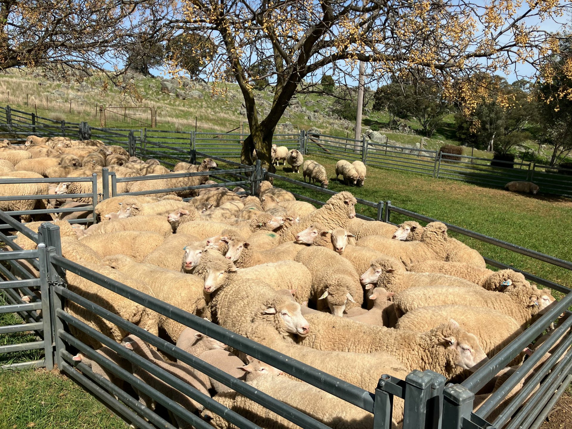 The main working race, concreted within the race and the wide walkway next to it, is shaded by White Cedar trees that keep the working area cool in the summer heat. All races have a lead up area for smooth flow of sheep, and the yards all connect with excellent holding areas.